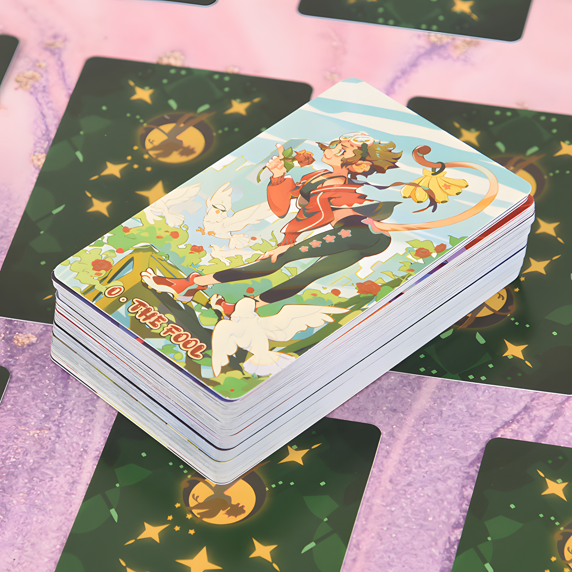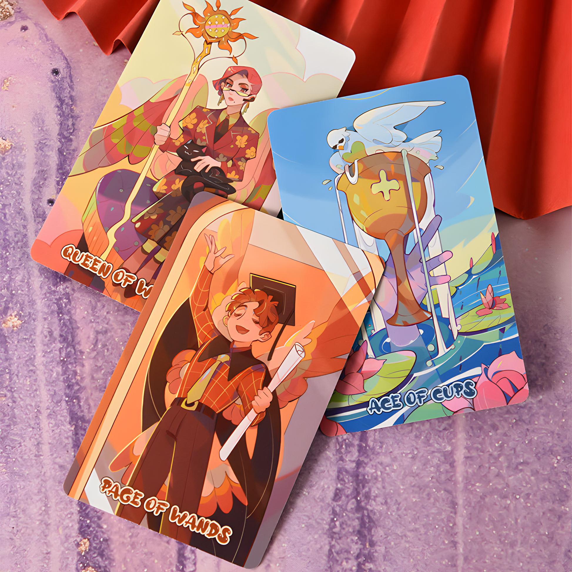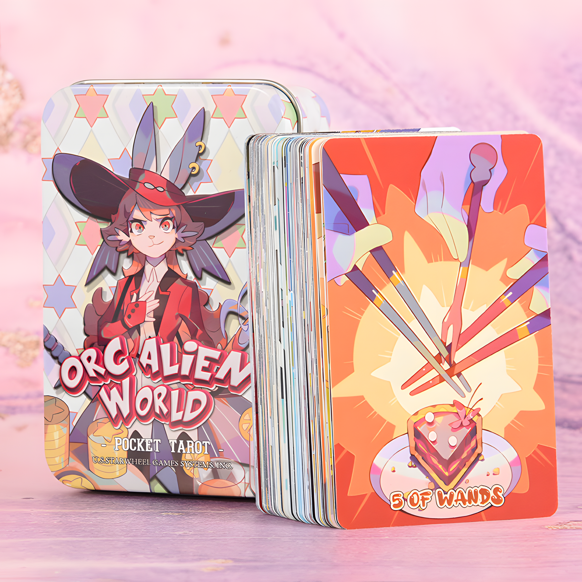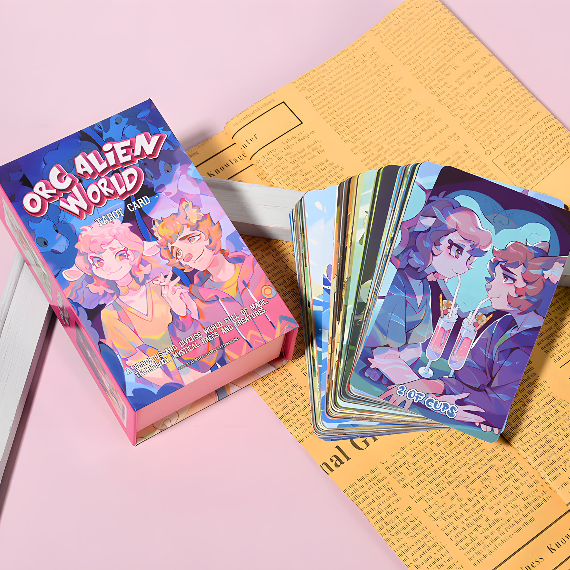 A technicolor chaos of alien glam, street carnival energy, and interplanetary flair. A cast of wild-eyed orcs, slick androids, and quirky hybrid beings. It's a deck that doesn't play by the rules, where cyberpunk meets cosplay, tarot archetypes reimagined as rockstars, magicians, and rebel queens under neon skies. If you're looking for something that trades solemn mysticism for vibrant imagination, this deck brings the party (and a bit of mayhem) to your readings.
