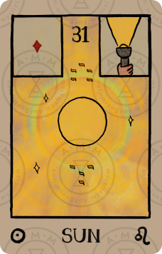 Summary: The Sun symbolizes success and a sense of achievement. It is one of the most positive cards in Lenormand. Its light reveals hidden truths and illuminates the path ahead, marking the end of hardships. It serves as a beacon of hope, bringing clarity and success. This card represents the culmination of all positive energies in the Lenormand system. Ultimately, its appearance assures you of victory.