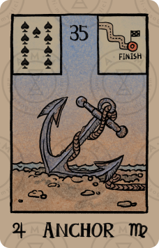 Summary: The Anchor symbolizes stability and arrival. It represents resilience and persistence in pursuing goals, even in the face of hardships. There is always something guiding and motivating a person to push forward. On the other hand, the Anchor can also signify an unwillingness to let go of outdated beliefs, unsuitable goals, or unhealthy attachments. Comparison: See 21. The Mountain and 43. The Ship for related interpretations.