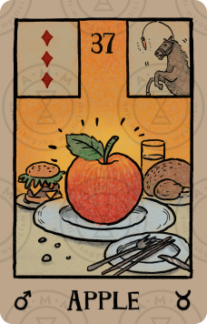 Summary: The Apple symbolizes food and desire. It represents all forms of nourishment and also a powerful urge to fulfill an unmet need—such as the craving for food when hungry or the thirst for knowledge in times of ignorance. Typically, these cravings are not driven by enjoyment or rational decisions, but rather by a sense of deprivation, which intensifies the longing to obtain something. This is similar to revenge spending, where an individual compensates for past scarcity by indulging impulsively when given the opportunity.
