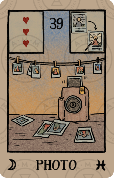 Summary: The Photo represents visual information and memories. In modern society, images are an integral part of daily life, from phone photography to digital recordings. Because a photograph captures a single moment in time, it symbolizes important memories and nostalgia. Additionally, since visual media is often edited or enhanced, the Photo card also represents beautified or altered perceptions of reality.