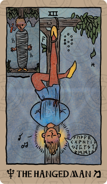 - Runic Symbolism – The Hanged Man is linked to Odin, the chief god of Norse mythology, who hung himself upside down on Yggdrasil for nine days and nights, not as punishment, but to attain enlightenment. The sacred runes were revealed to him during this time