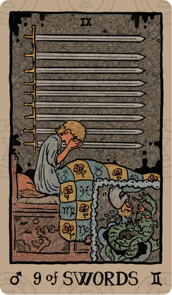 Card Imagery: The figure is deeply immersed in the pain of their nightmares, unable to escape, ultimately consumed by their own fears.