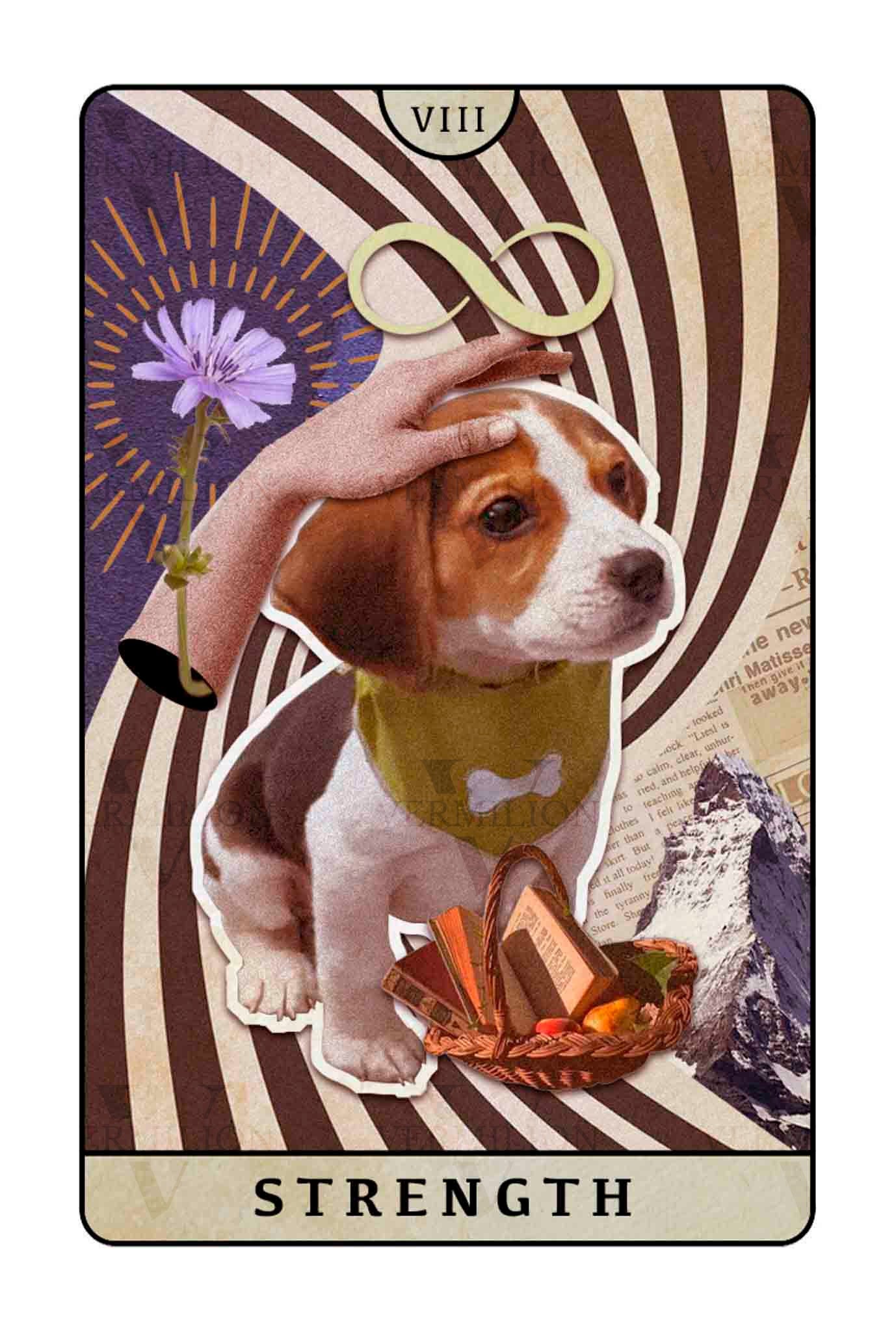 When Strength appears reversed, it may point to a lack of inner strength, self-doubt, or loss of control. You may be facing inner conflict and feel like you've lost faith in your ability to train the beagle, or feel powerless in the face of obstacles. The reversed Strength may also indicate excessive control, or situations where fear or anger have taken over.