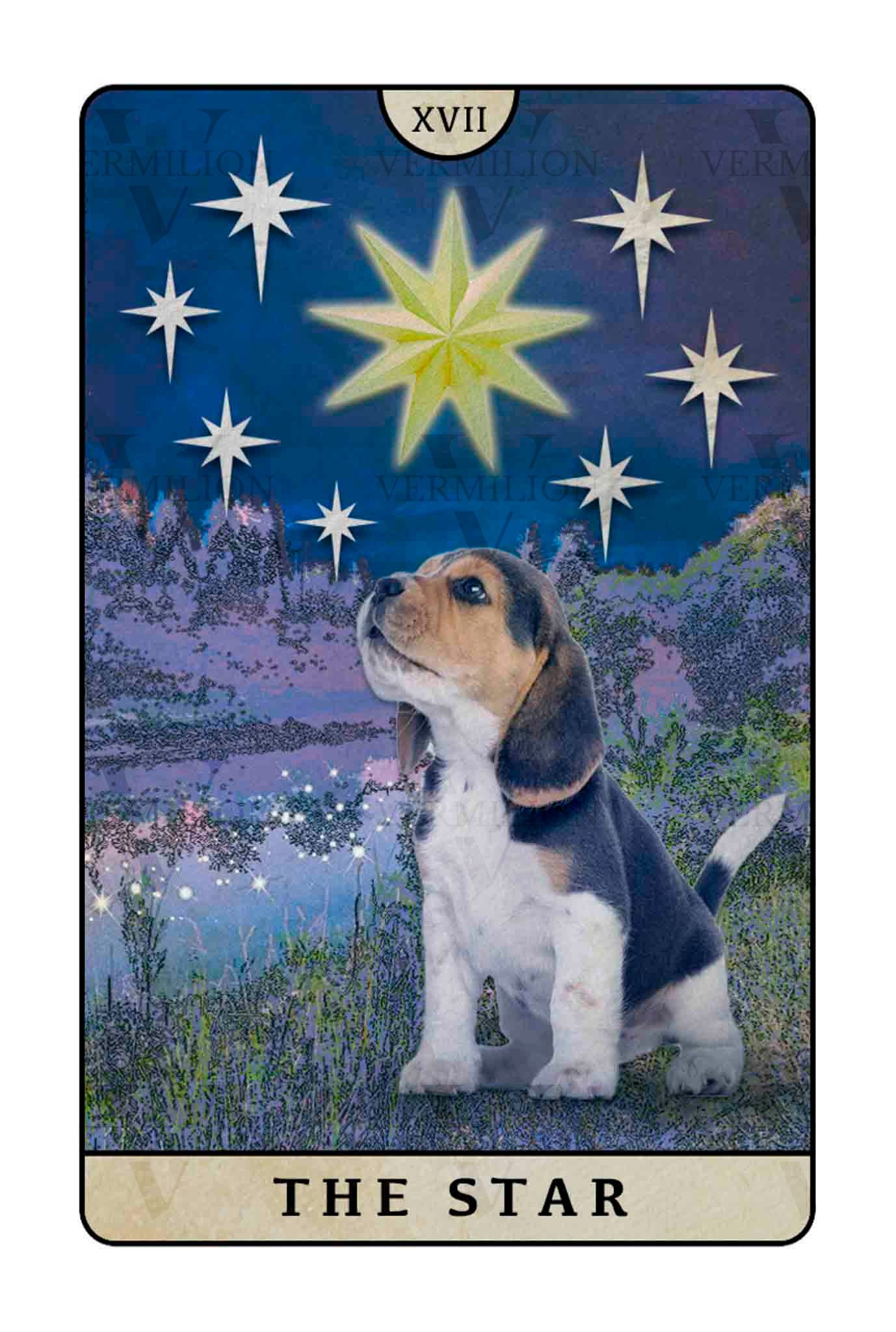 The Star card radiates a pure energy—like a newborn beagle, still free from any mischief. Though the stars are distant from us, the card often relates to distance and digital connections. When the Star appears upright, it suggests you are connecting to your higher self and the energy of the universe, finding direction and purpose in life. It also represents creativity, inspiration, serenity, and spiritual love.