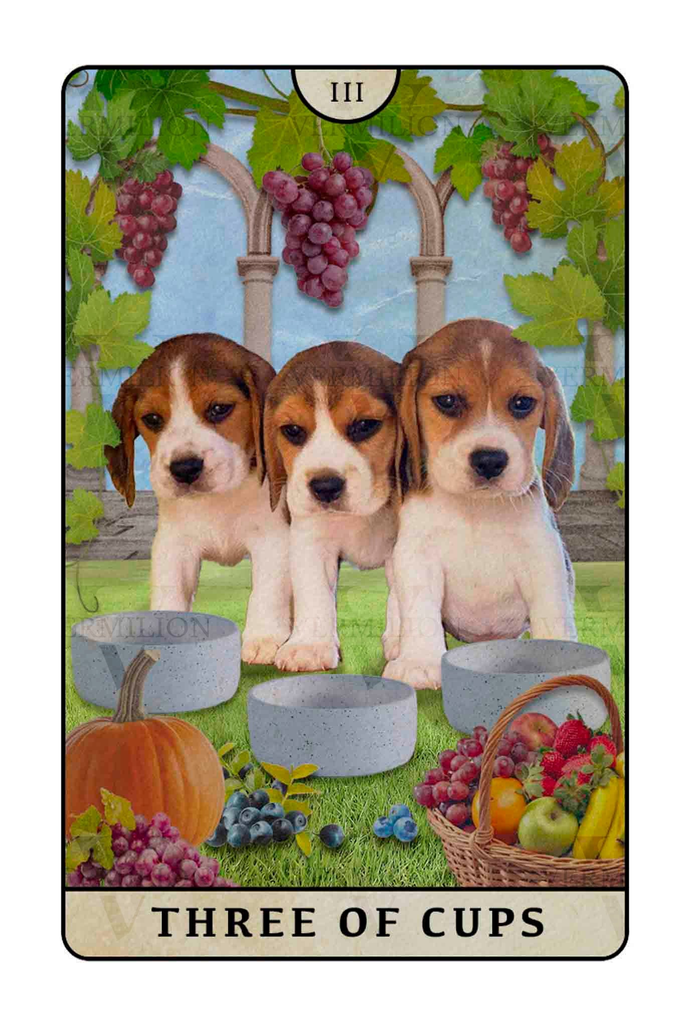 Why did the beagle, who was just getting along so well with everyone, suddenly bark…? That’s because when the Three of Cups appears reversed, it may hint at an imbalance in social activities—like trouble in a friendship or discord in a group collaboration. This card reminds you not to overindulge or neglect deep personal connections, or to lose your sense of self in the midst of social events.