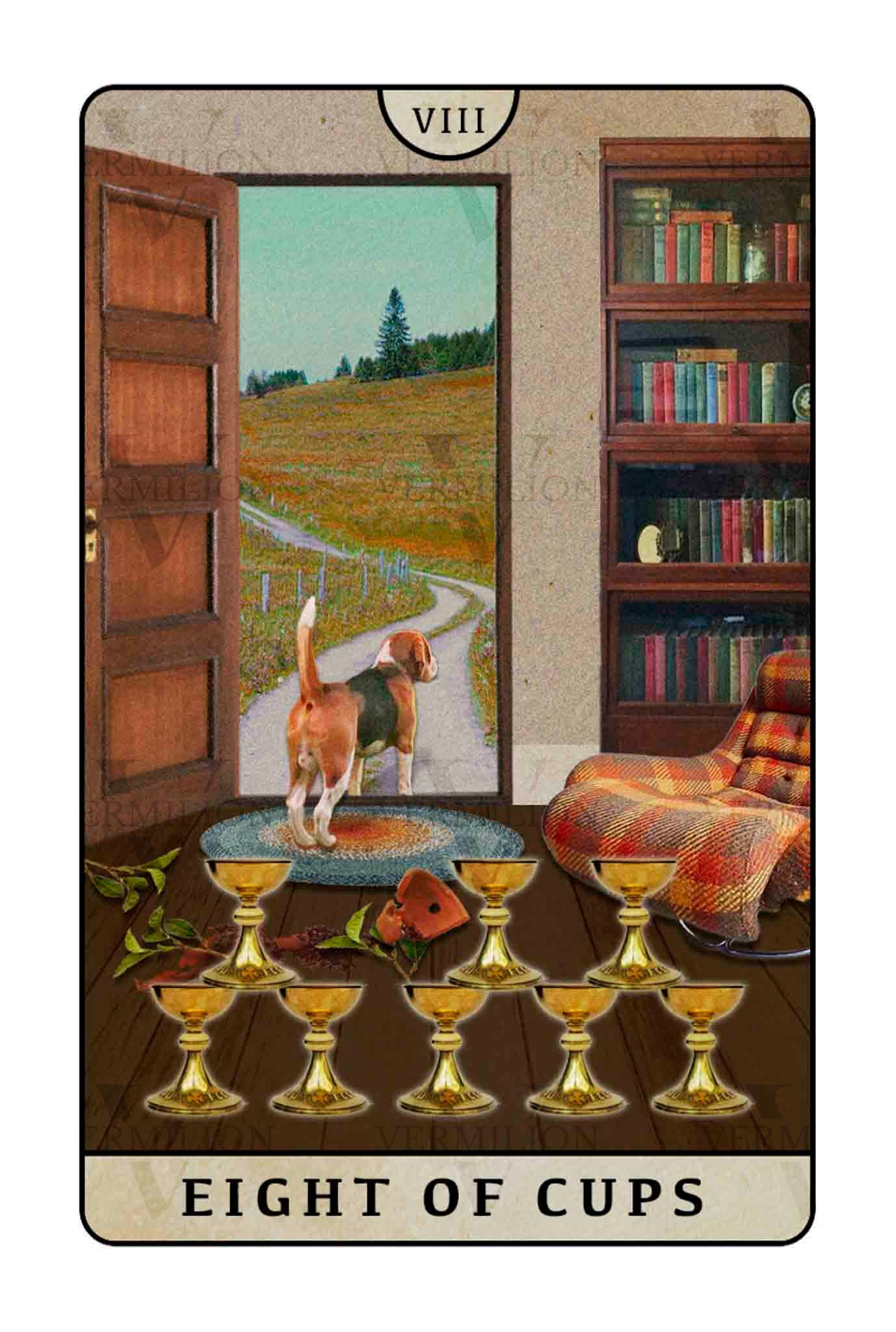 Why does the beagle suddenly walk away from this home? When the Eight of Cups appears upright, it symbolizes the decision to leave or abandon something that has been made. This could mean you’ve already gained all possible growth and experience from your current emotional situation, relationship, or pursuit, and now feel it no longer brings fulfillment or meaning. Therefore, you decide to seek a new direction or goal.