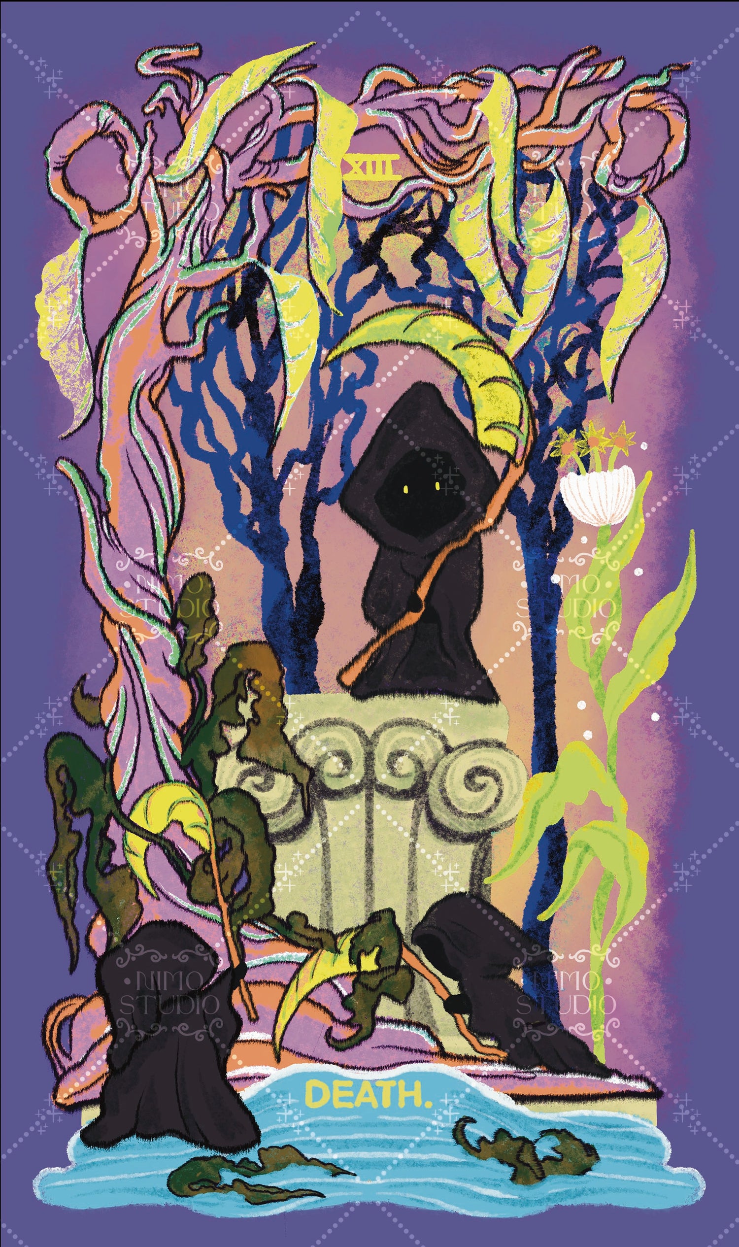 The leaves of this tree sharpen as they mature, resembling natural scythes. Once ready, they detach on their own, and within their veins lie hidden seeds. When the Little Reapers put these leaves to use, the scythe-like edges wear down, releasing the seeds to the earth. In this way, the leaves serve not only as tools but also as fruit, a singular survival strategy of the Scythe-Leaf Tree.