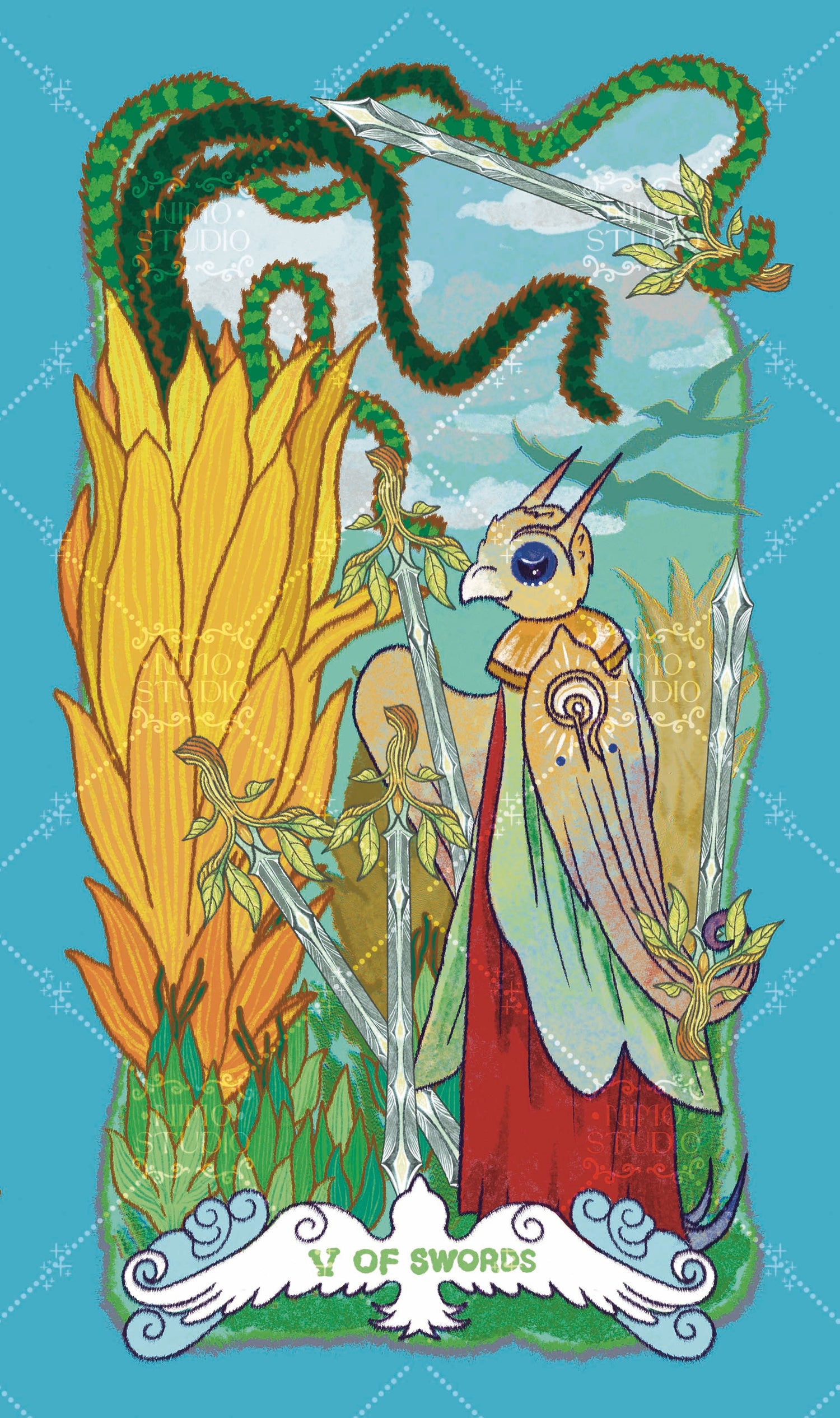 The Five of Swords represents conflict, quarrels, struggles, and a tense atmosphere. It may indicate battles within your own heart or disputes with those around you.