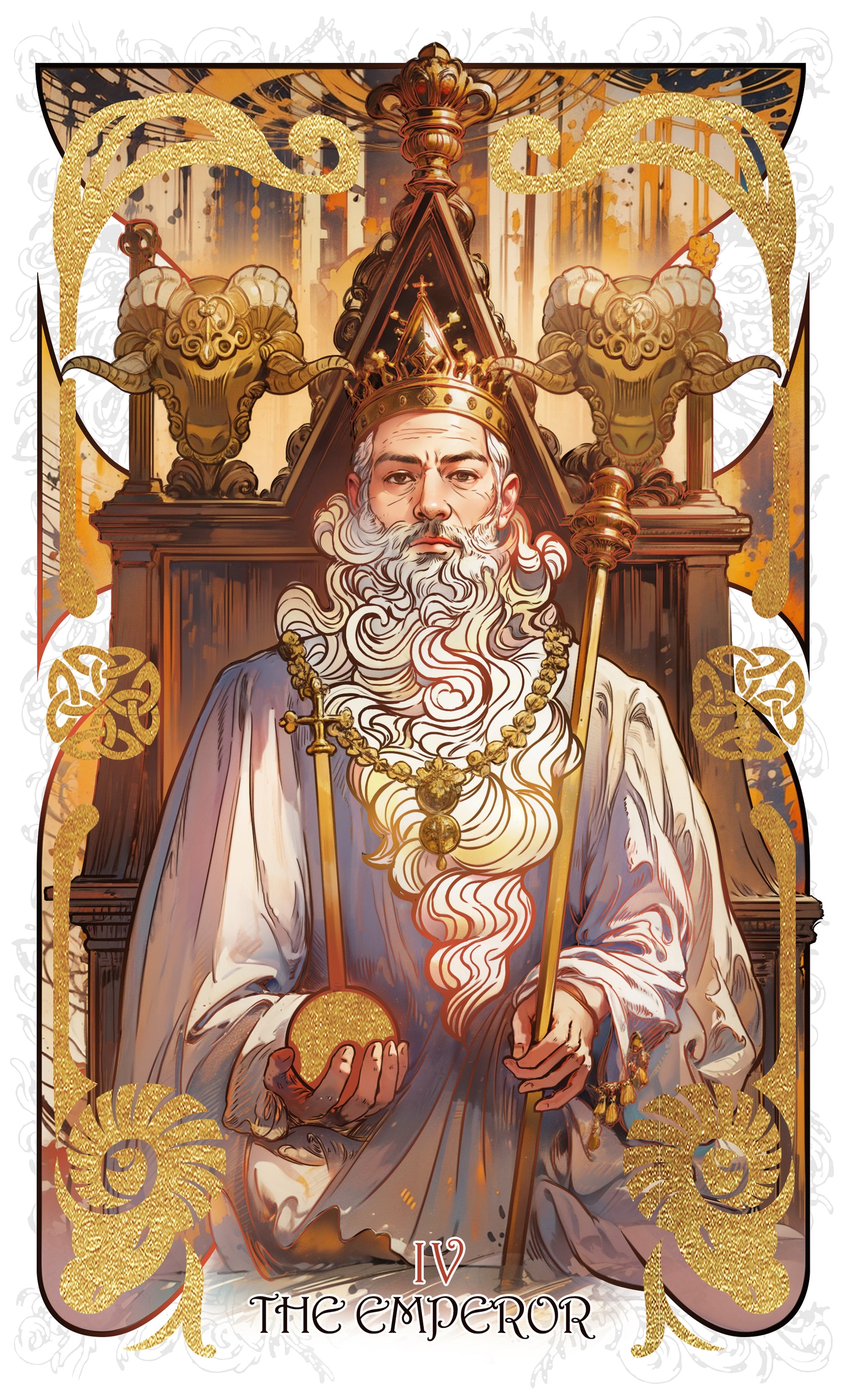 The Emperor is masculine energy, the father. He is able to calm chaos and offer authoritarian guidance. He exudes the traits of leader, protector, and provider, but can be ruthless if disagreed with.