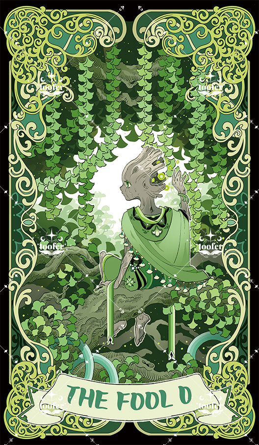 In the character design, The Fool's essence is a seed. Therefore, it is depicted with a wooden body, containing a strong "life energy." There are also glowing orbs representing "life energy" emanating from its head. The hooded cloak suggests that The Fool will appear as a traveler in this story. The Fool sits on a tree trunk, parting the leaves like curtains, gazing into the distance. The voice inside echoes and lingers: "It is time to embark on the journey."