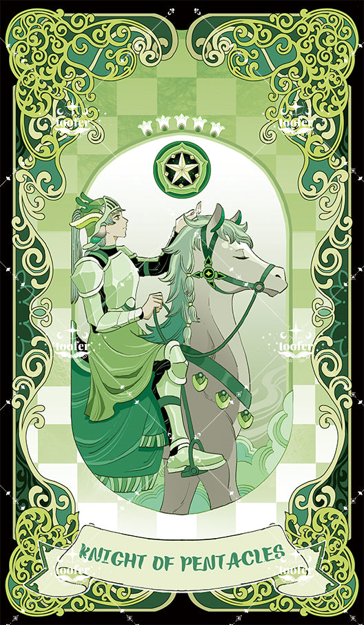 The Knight rides his horse, slowly and steadily moving forward without haste. The pentacle in his hand rises and falls, symbolizing his firm grasp on the realities of the world. His gaze remains calm and focused on the pentacle, representing his concentration and composure. This Knight is mature and steady, capable of defending the realm with dignity, commanding respect from others.