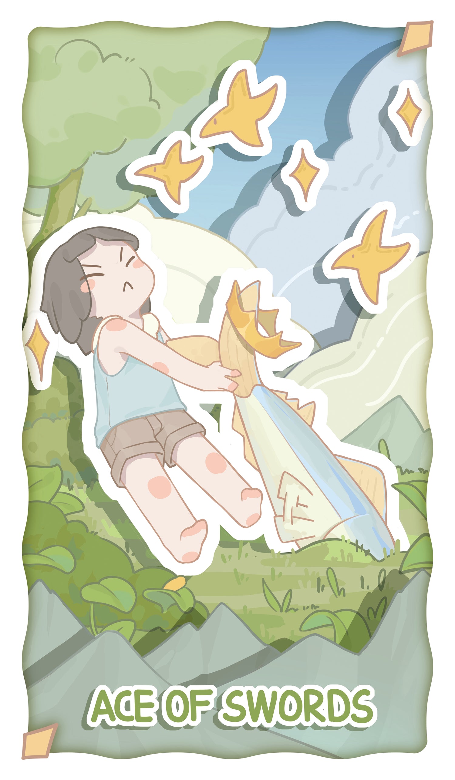 The girl grips the fish-tail hilt tightly, straining to pull it free. For her, this is a new challenge, yet she doesn’t seem to have enough strength to finish the task, symbolizing that the current situation may be hard to sustain. The effort may feel exhausting, but persistence will eventually lead to success, and the sword’s release will mark the start of a fresh path.