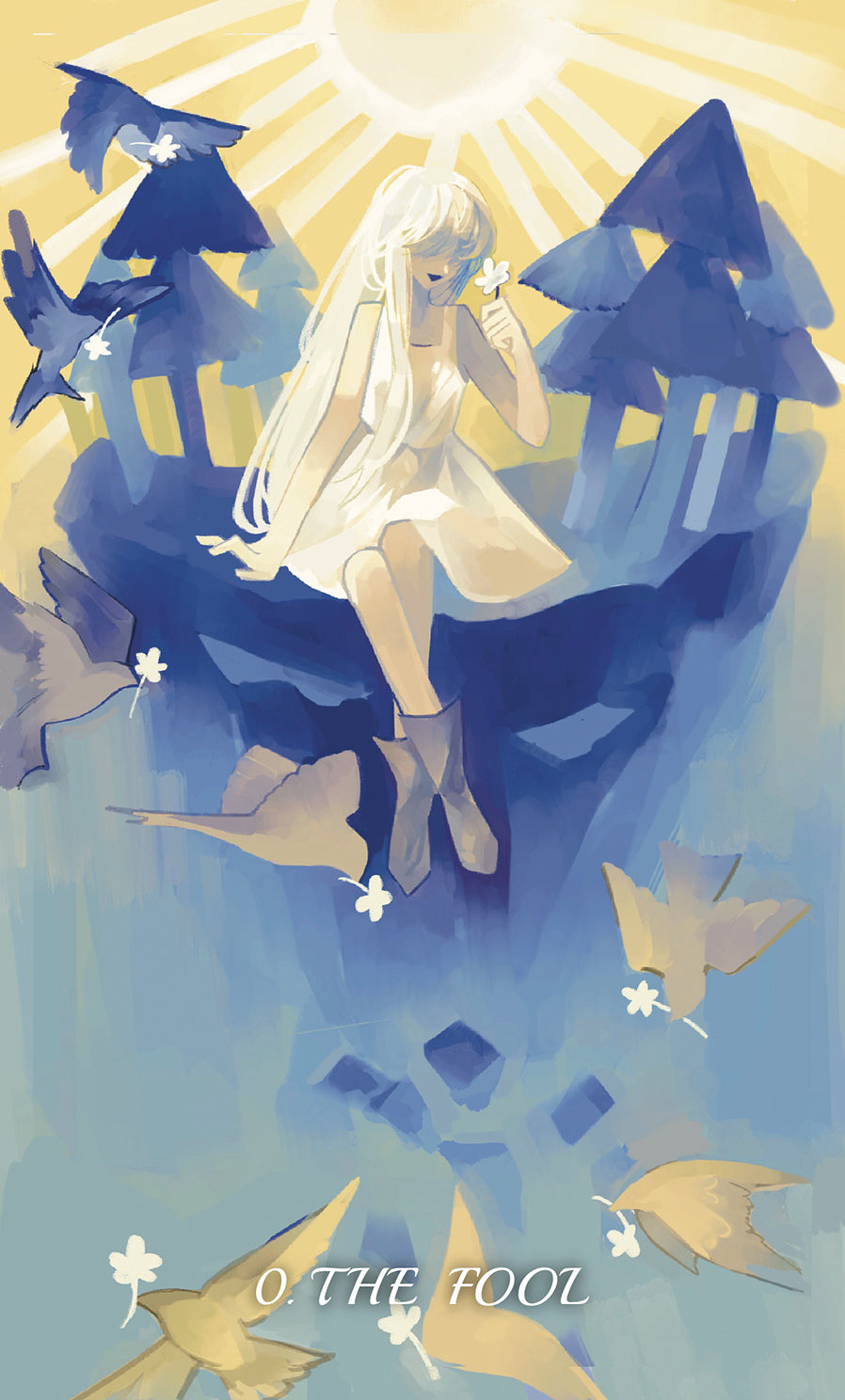 Ahead awaits an unknown journey: the flock may scatter into the clouds at any time; thorns may cut her skin. But the moment her feet leave the familiar ground; this adventure becomes an irreversible one-way trip.The Fool represents a new journey, a bold and idealistic adventure. It is such a confident, naive, and reckless act; thus, the Fool also reminds us to act with caution. If you have weighed the risks and made up your mind, then go forth — with a heart as brave as gold.