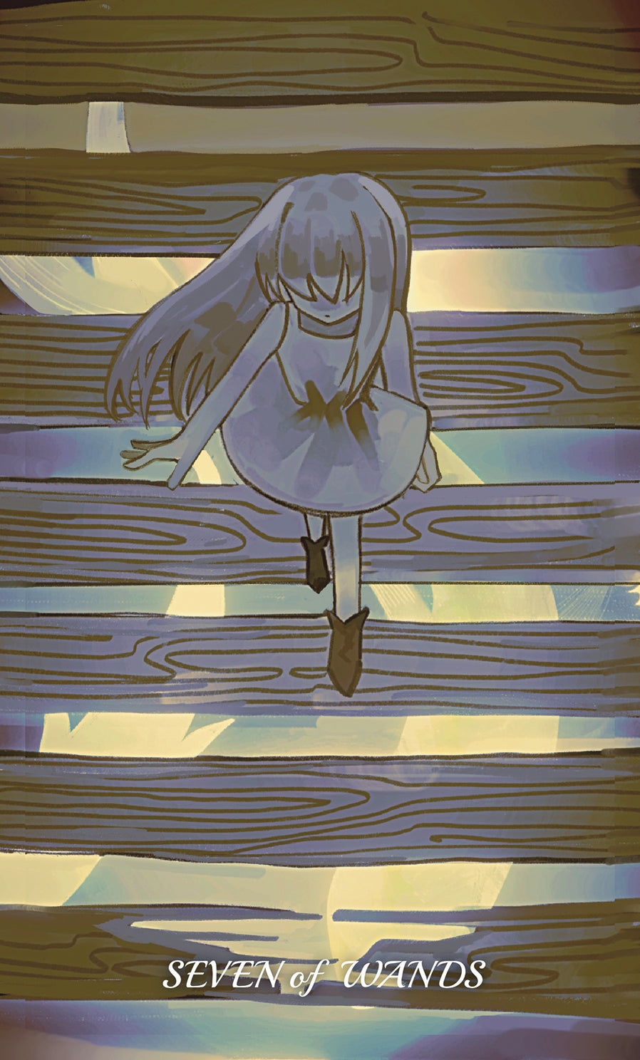 The Wands suit is always about moving forward. She will always choose to continue engaging in conflict, even when it’s difficult. When reversed, the contradictions of this card come to light. The difficult road ahead causes her to fall into uncertainty and anxiety.