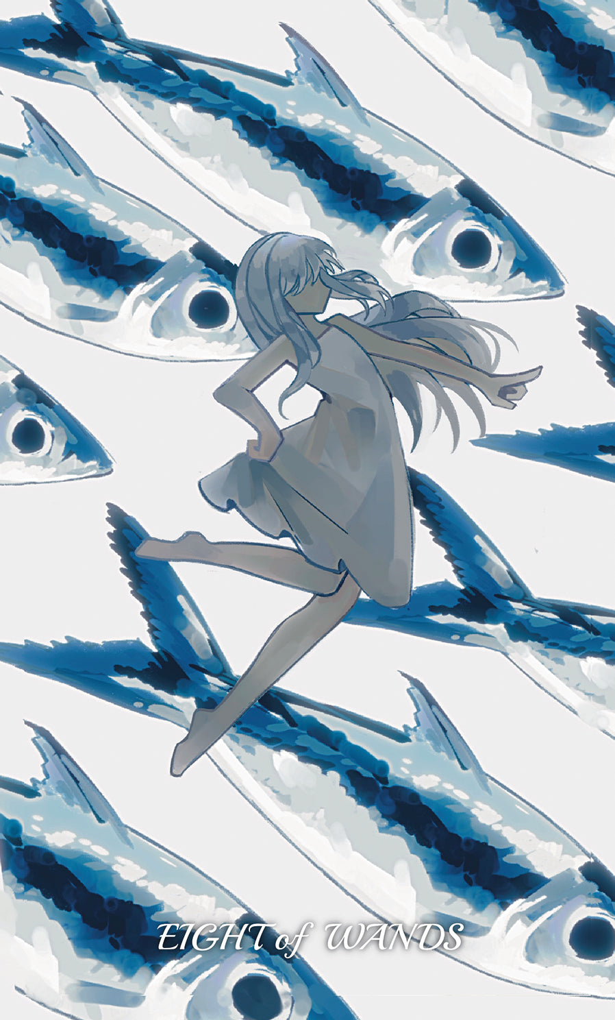 It feels like she’s fallen into the water, but perhaps she’s flying. Are there fish with her? Sardines? It’s absurd. Yet, the girl seems to have rekindled her passion and drive. She commands the fish to keep moving forward, onward! But once this last fantasy burns out, will the sardines be made into cans?