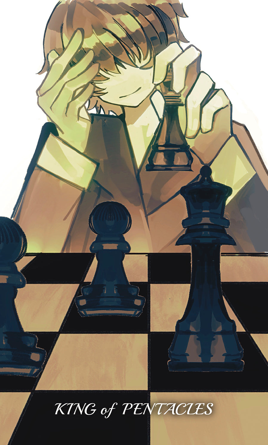 A ruler of the material kingdom and master of his environment, he holds a chess piece and gazes confidently ahead, expanding his territory. From the very start, he has carefully laid the groundwork for success.