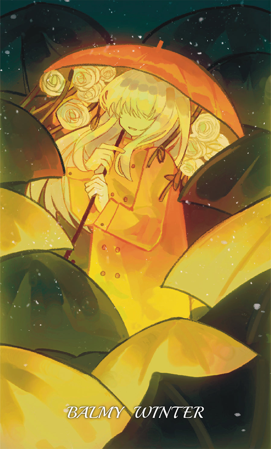 On a cold winter’s night, snow drifts gently through the air. Amidst the bustling crowd, the girl seems to sense your gaze. She suddenly turns, smiling at you. Is it the light reflected from that yellow umbrella?