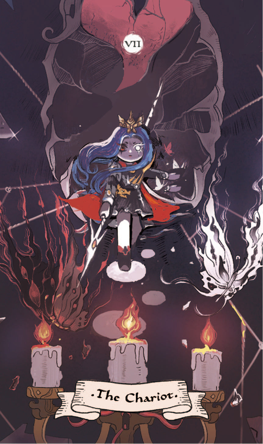 The Chariot represents powerful will and determination. If The Lovers card speaks of choice, The Chariot is the execution of that choice. Only by overcoming inner fear and confronting one’s own shadows can one truly take control of their destiny. Thus, the second meaning of The Chariot is victory — she will strive with all her might to achieve what her heart desires.