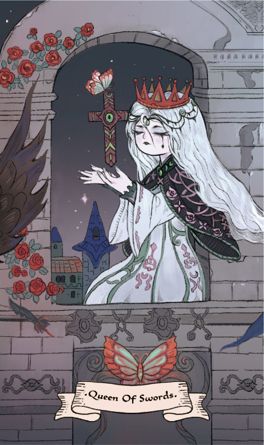 The Queen of Swords embodies intellect, justice, and discernment. Her mind is sharp, her reasoning impartial, her judgment resolute. Yet her unwavering rationality can create distance between herself and others, pushing away emotional connections — turning her into a “slayer of feelings,” guided more by clarity than by compassion.