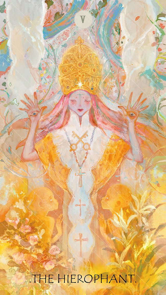 The Hierophant represents respect for tradition and authority, adherence to morality and norms, and a quest for spiritual guidance and wisdom. As a divine messenger and spiritual mentor, the Hierophant possesses remarkable insight and vast knowledge. He is like an unattainable lighthouse, illuminating the spiritual path for humanity.