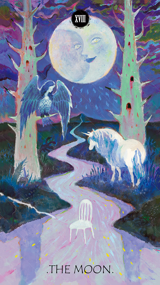 The silver moon gazes upon the earth. No matter where we are, certain emotions and subconscious thoughts always follow us like a shadow. The unicorn, typically hidden deep within the forest, is both a fierce beast and a creature that may attack unfamiliar humans. Only women with pure hearts can coexist with it peacefully. Thus, even encountering a solitary unicorn in the forest is far from safe. It symbolizes loneliness, reserve, and a rebellious spirit dwelling within our subconscious.