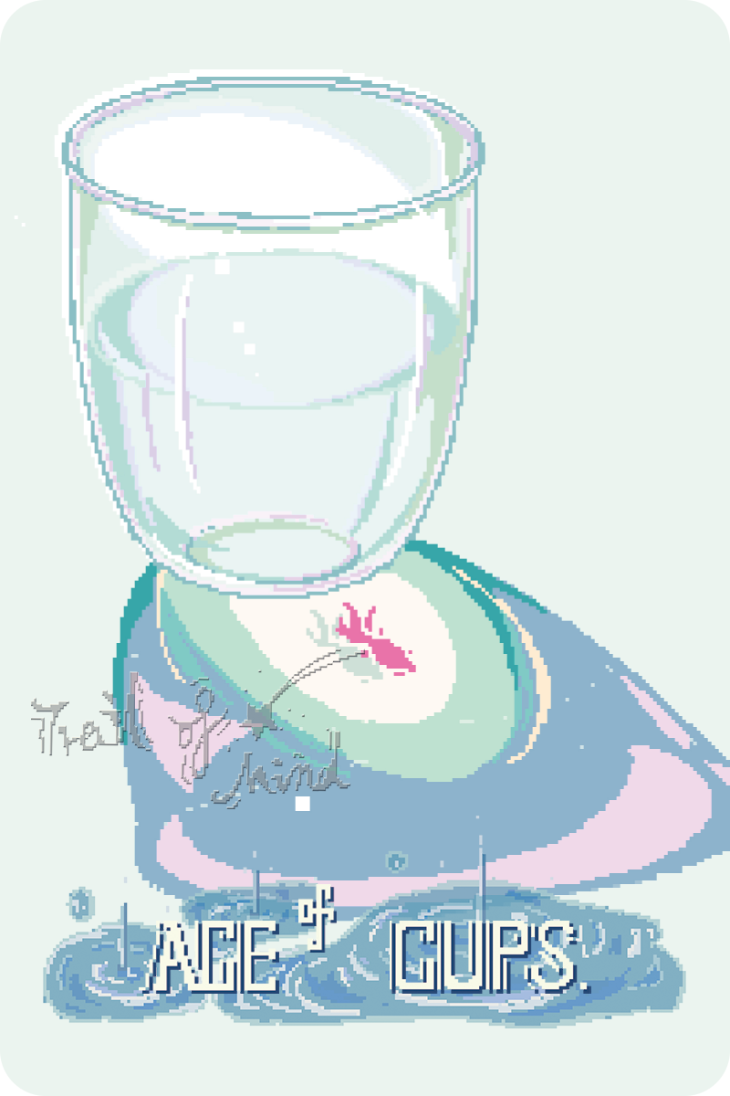 Wands provide action, Swords provide understanding, Pentacles provide the material world. The Ace of Cups represents the most primordial form of water. It offers emotion and inspiration. Just as living beings cannot survive or grow without water, water is also the most nurturing and accepting element. It is connected to emotional depth, compassion, and the subconscious.