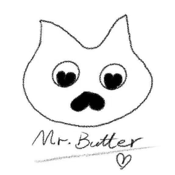 Meet Mr. Butter, a divine cat born on July 25, 2023. With heart-shaped eyes and an upside-down heart forming his nose and mouth, the face alone tells you Mr. Butter is no ordinary being. He shape-shifts between cat, human, angel, and ghost. He's cute, silly, righteous, and free-spirited – all at once.