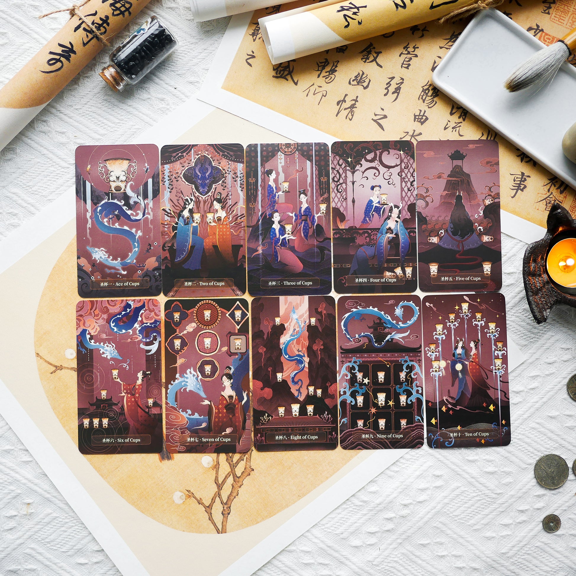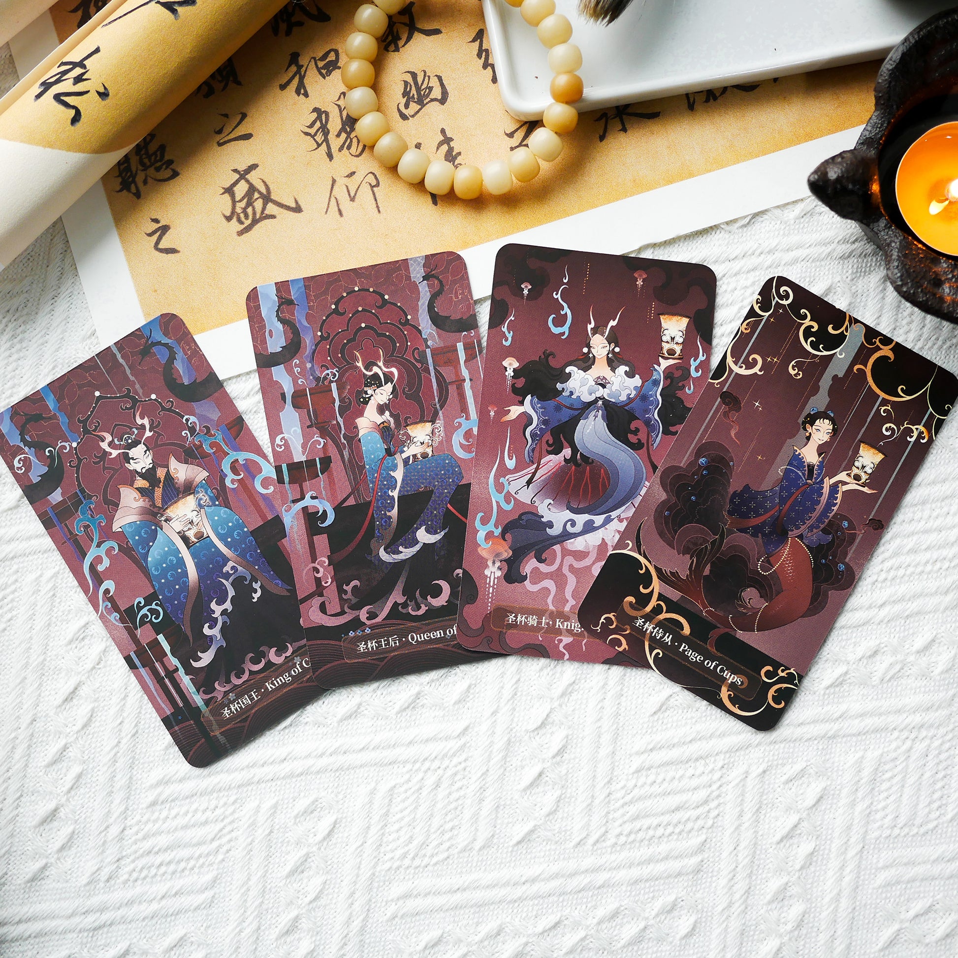 We invite you to immerse yourself in the lore and help keep alive the timeless saga of the dragon! A mythical being, the dragon is the only Chinese zodiac animal that does not exist. In celebration of 2024, the Year of Wood Dragon in the lunar calendar, we proudly present the Lóng Tarot. This deck will captivate you with the awe-inspiring presence of the dragon in its legendary form, alongside its descendants who have mystically transformed into humans. Each character has a unique mission deeply rooted in their domain, waiting for you to find out...