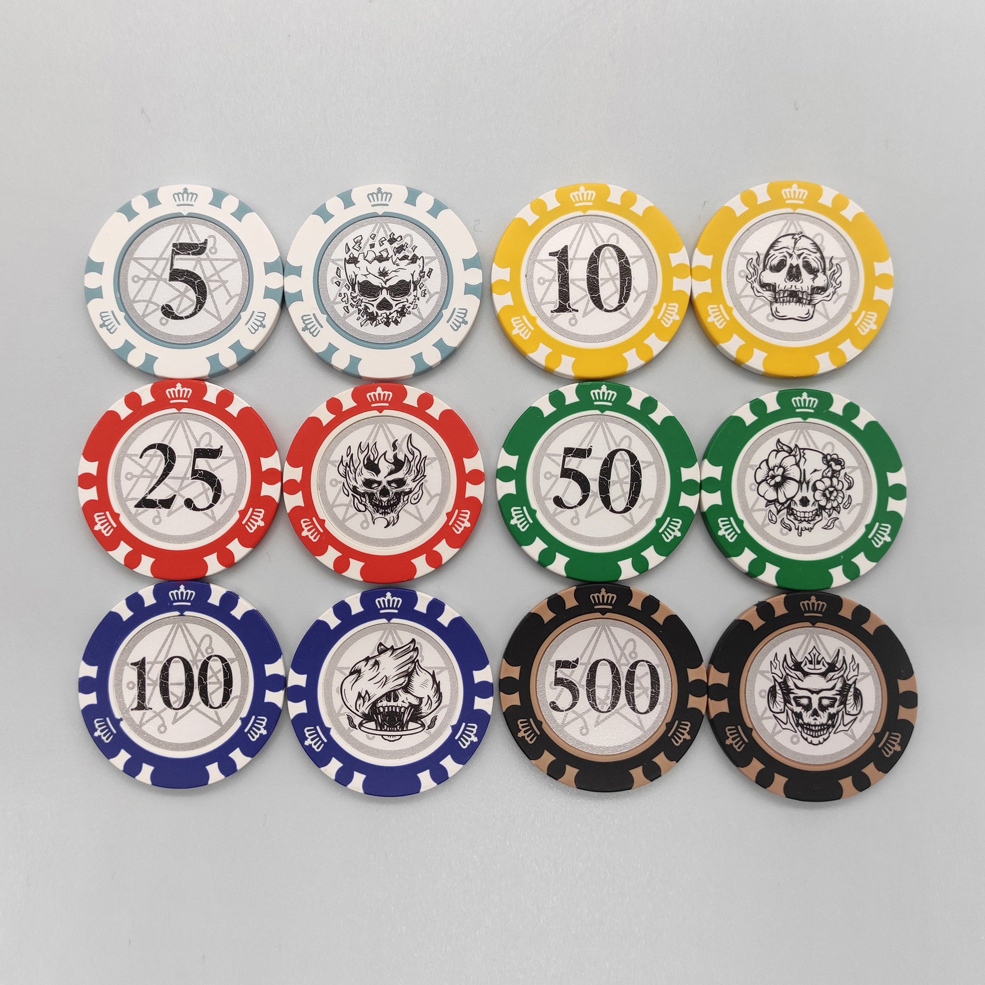 - Chip Materials: clay, PVC