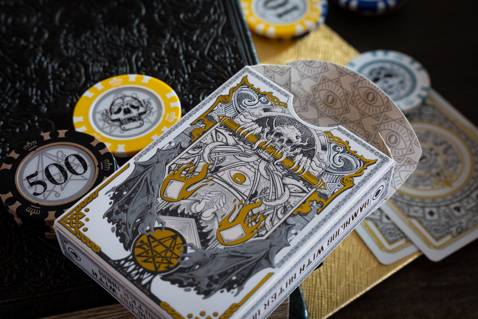 By carefully marrying Lovecraftian horror with the long-standing tradition of poker, this collection speaks to the underlying connections between card games and the Cthulhu mythopoeia. Including four decks of different colors, makings, and uses, it is more than a novelty entertainment but a highly usable, artistic treat for beginners, seasoned players, aficionados, and collectors alike.