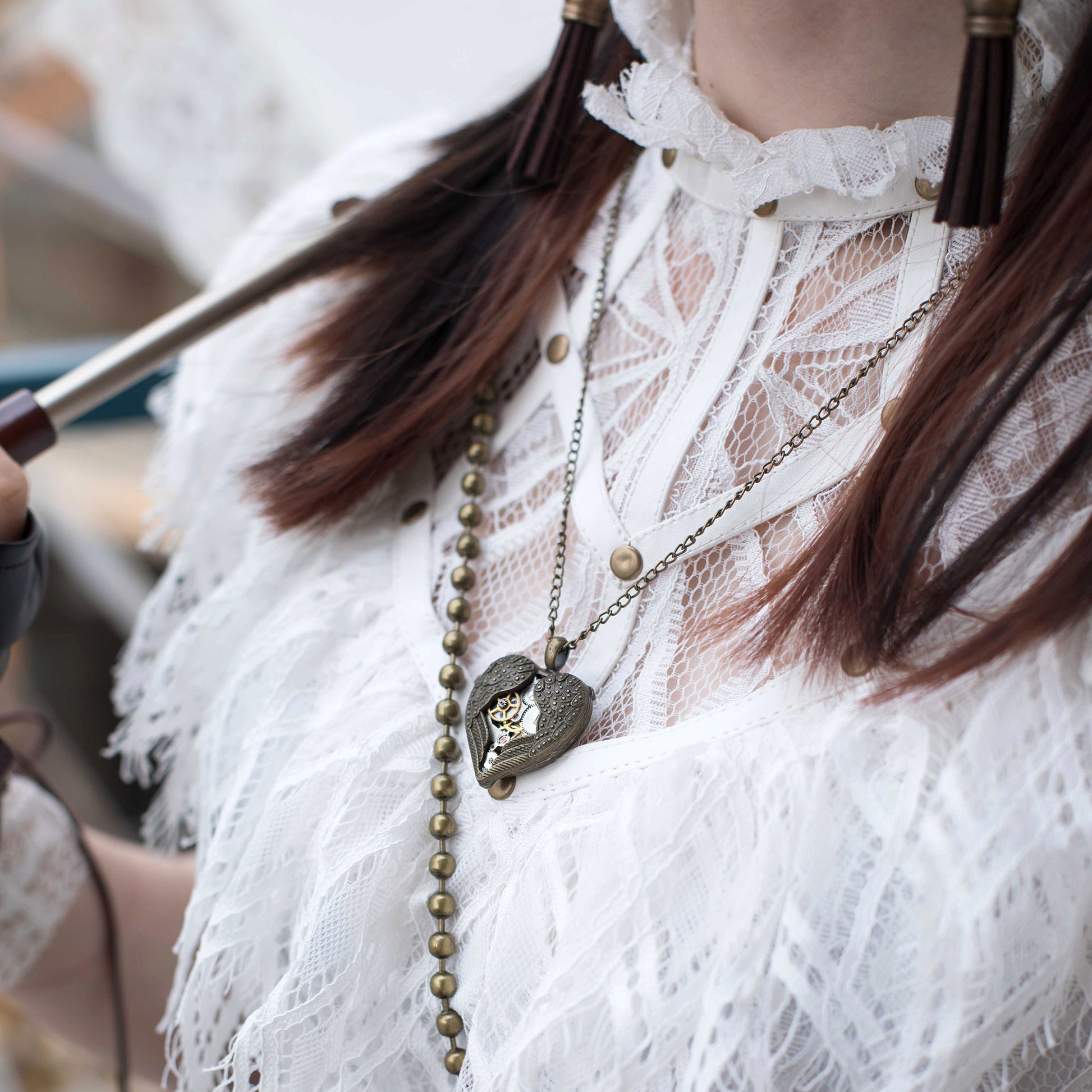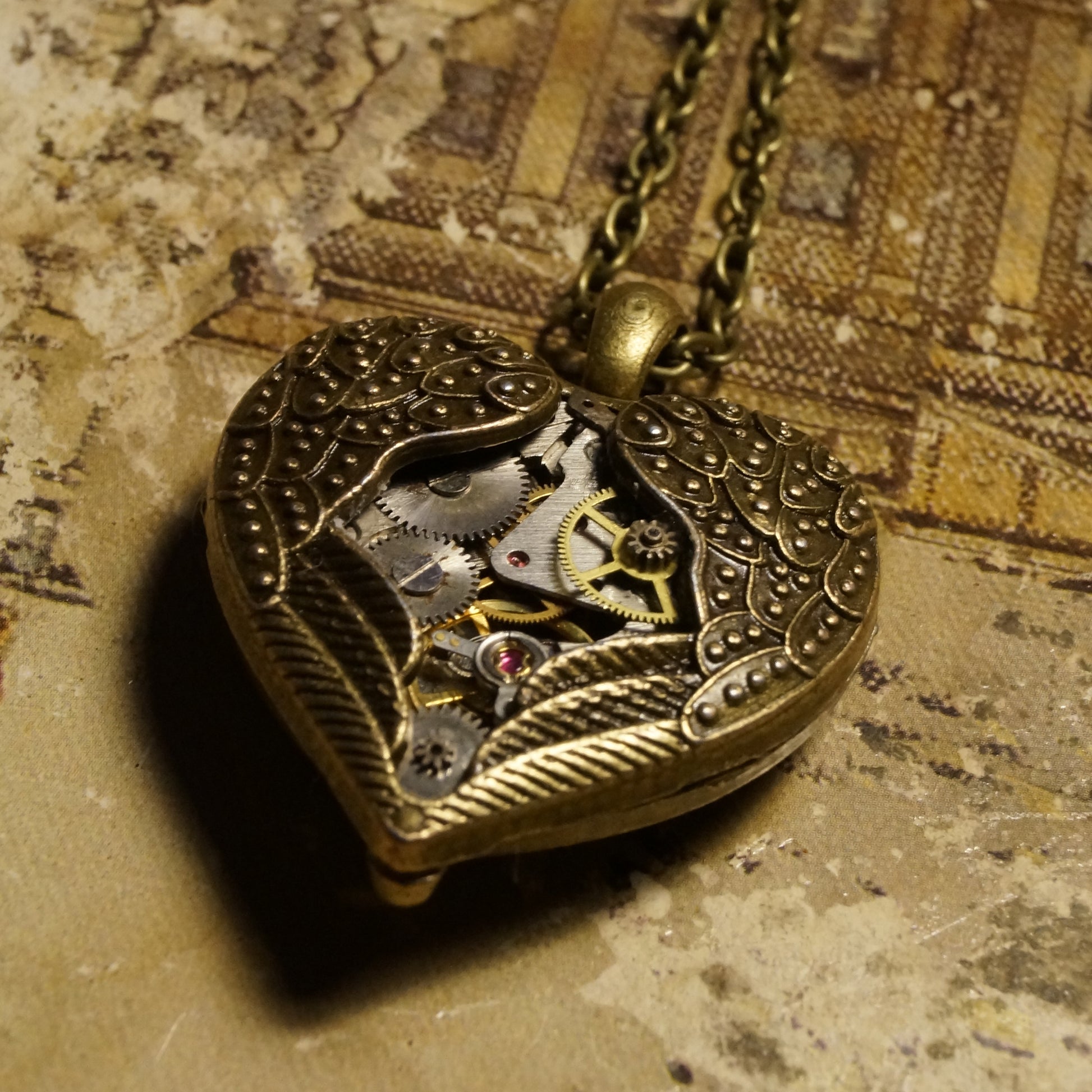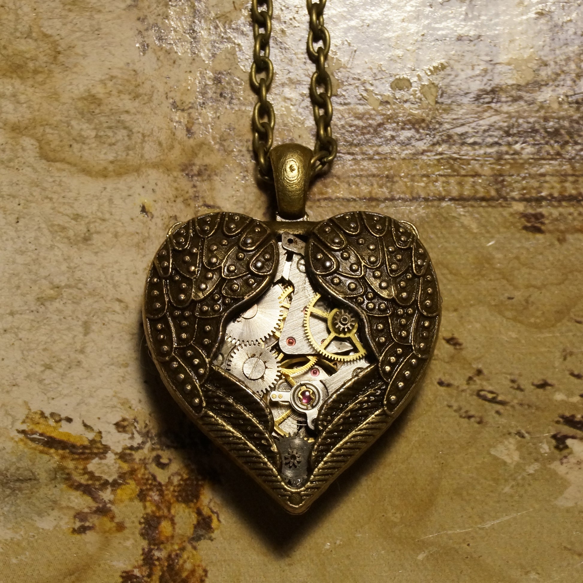 Ever wonder what makes a heart tick? We cracked the code! Meet this tiny handmade marvel, where romance meets retro-futuristic engineering. Nestled inside its metallic winged heart frame are delicate gears and cogs that look like they may start turning at any moment. Wear it to your next con, a night out, or just because you want to look STEAMing cool on a Tuesday. Perfect for anyone who loves a little mystery and a lot of style.