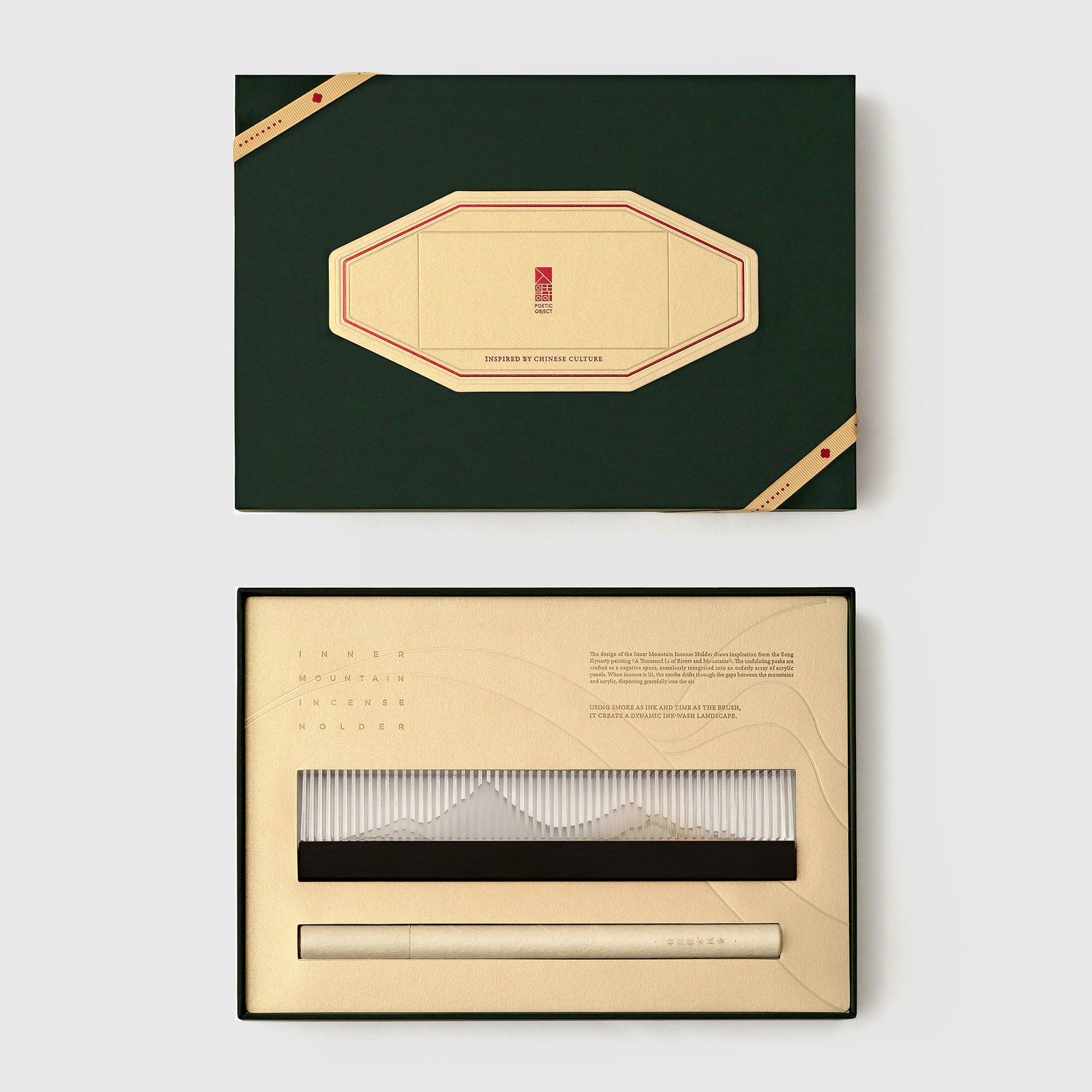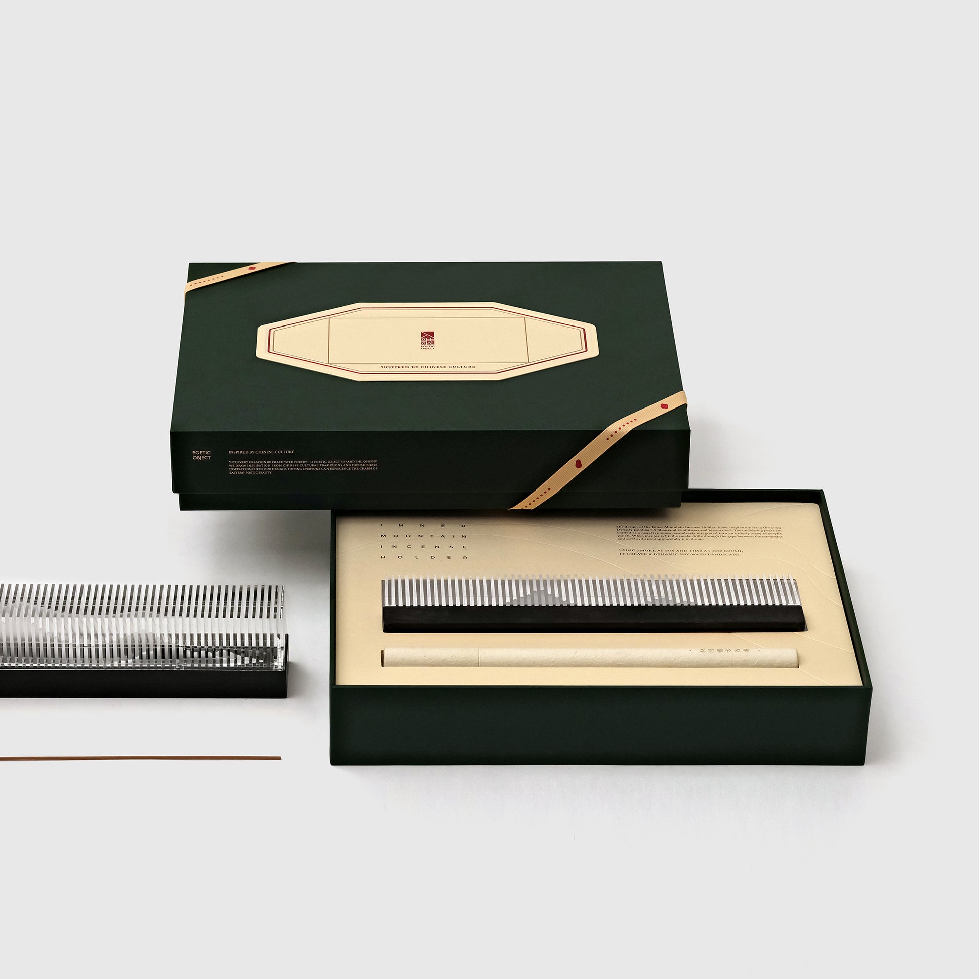 A meditative artwork revealing the "mountain" within, this incense holder draws from the philosophy of retreat - seeking simplicity, inward clarity, and a life attuned to the self. Its form is inspired by A Thousand Li of Rivers and Mountains, distilled into a minimal, contemporary landscape.