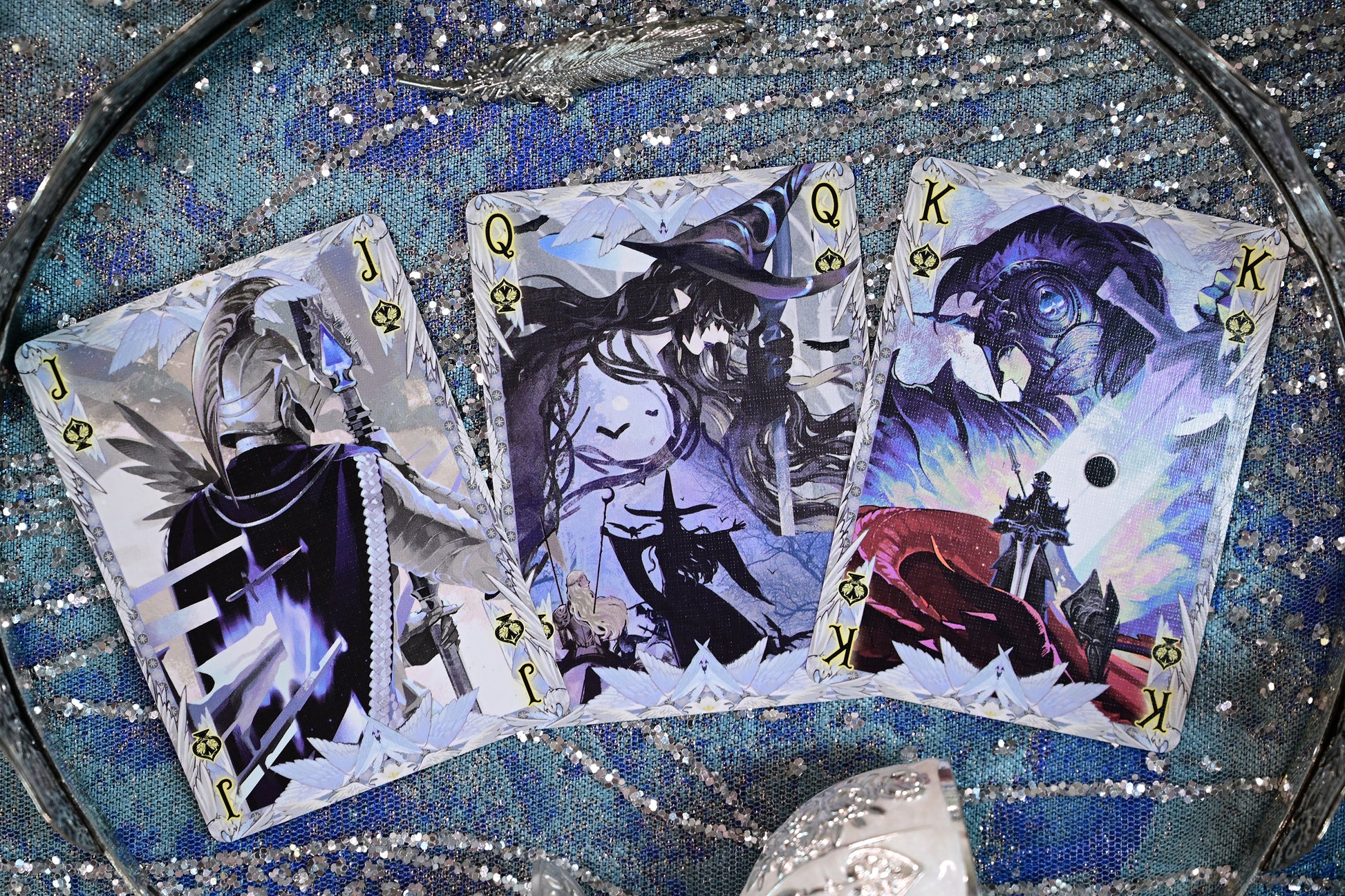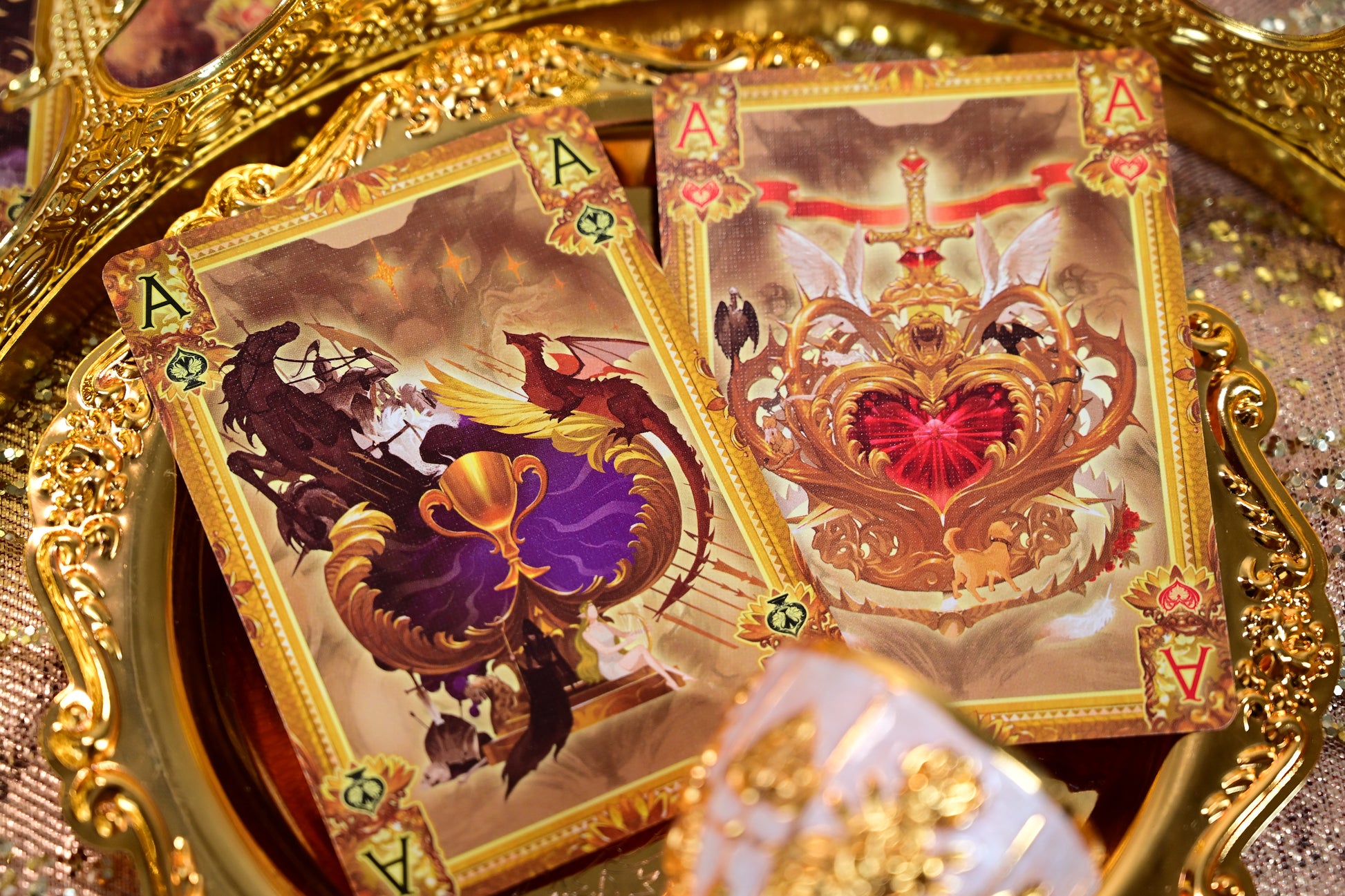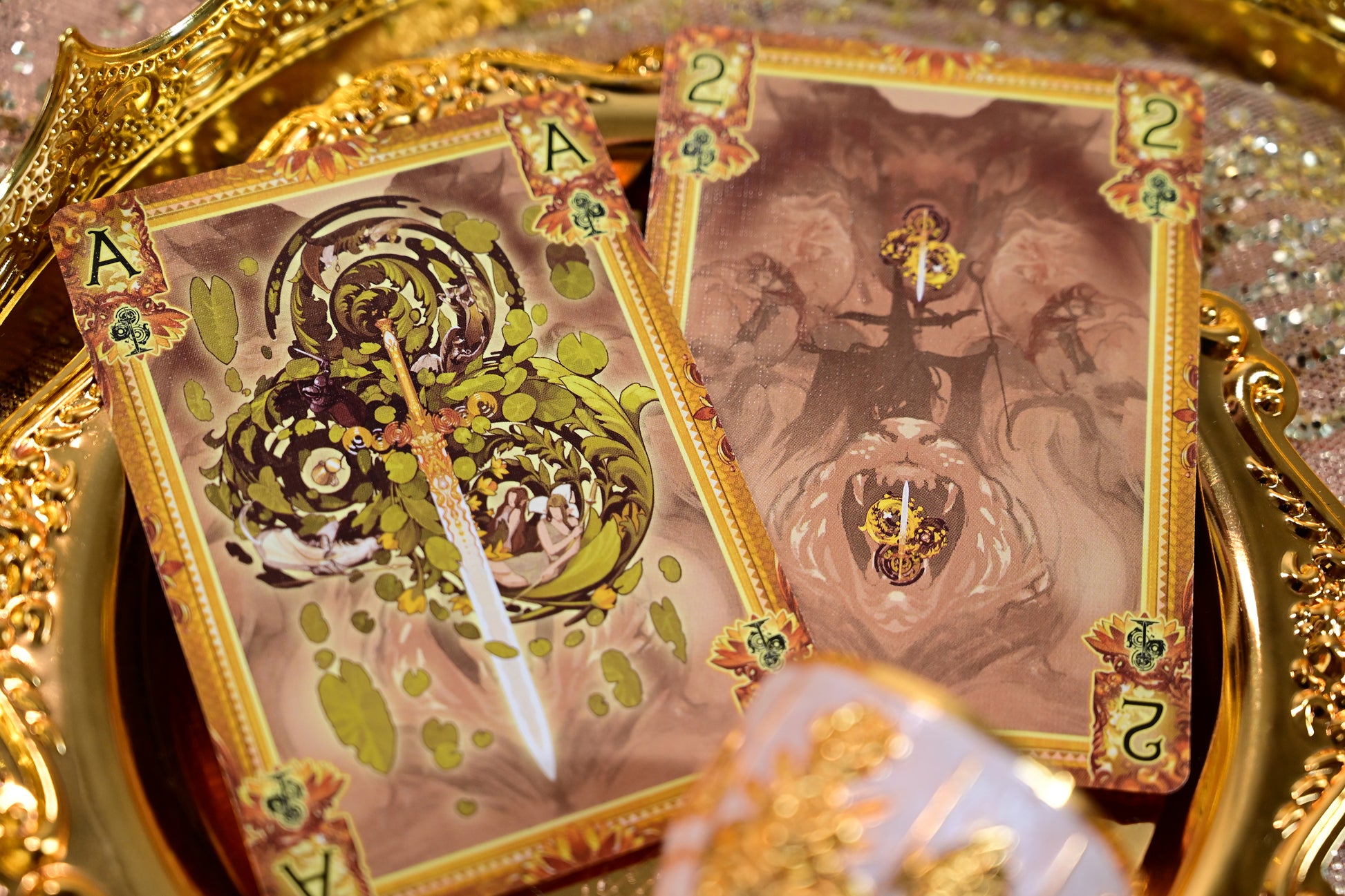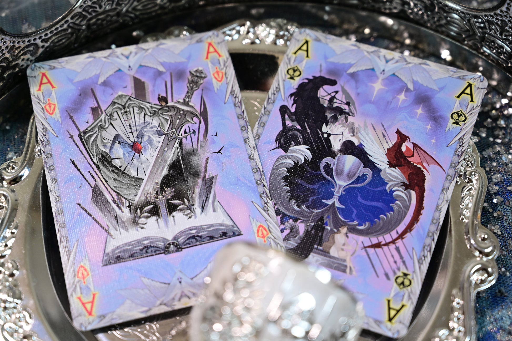 Enter the age of chivalry with this lavish duo, brought to life with the most iconic figures of Arthurian lore: King Arthur crowned in destiny, Guinevere cloaked in beauty, Lancelot burning with valor... At the heart of it all is Excalibur, the symbol of divine right and fateful burden. Its presence runs through the cards like a blessing and a curse, calling forth themes of power and sacrifice.