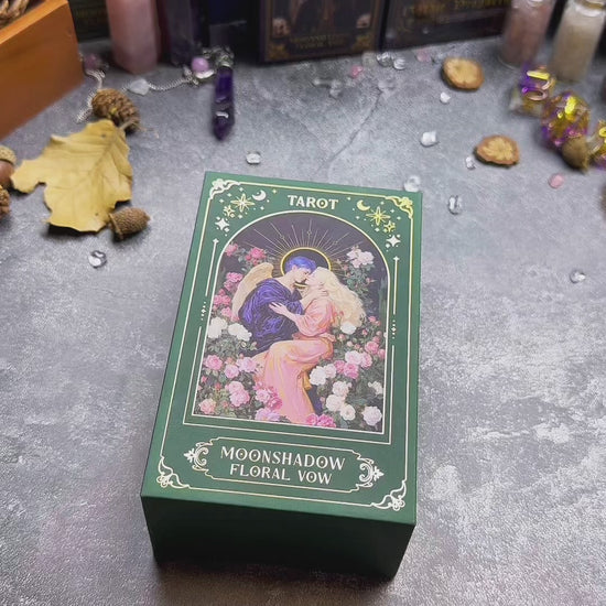 A vow of devotion to beauty, merging natural motifs and medieval aesthetics. The cards tell stories not only through symbolism but also through the intricate details, guiding you through a secret moonlit garden. Ornamental frames and woven patterns add a sense of regal refinement, drawing you into a world of romantic mysticism.