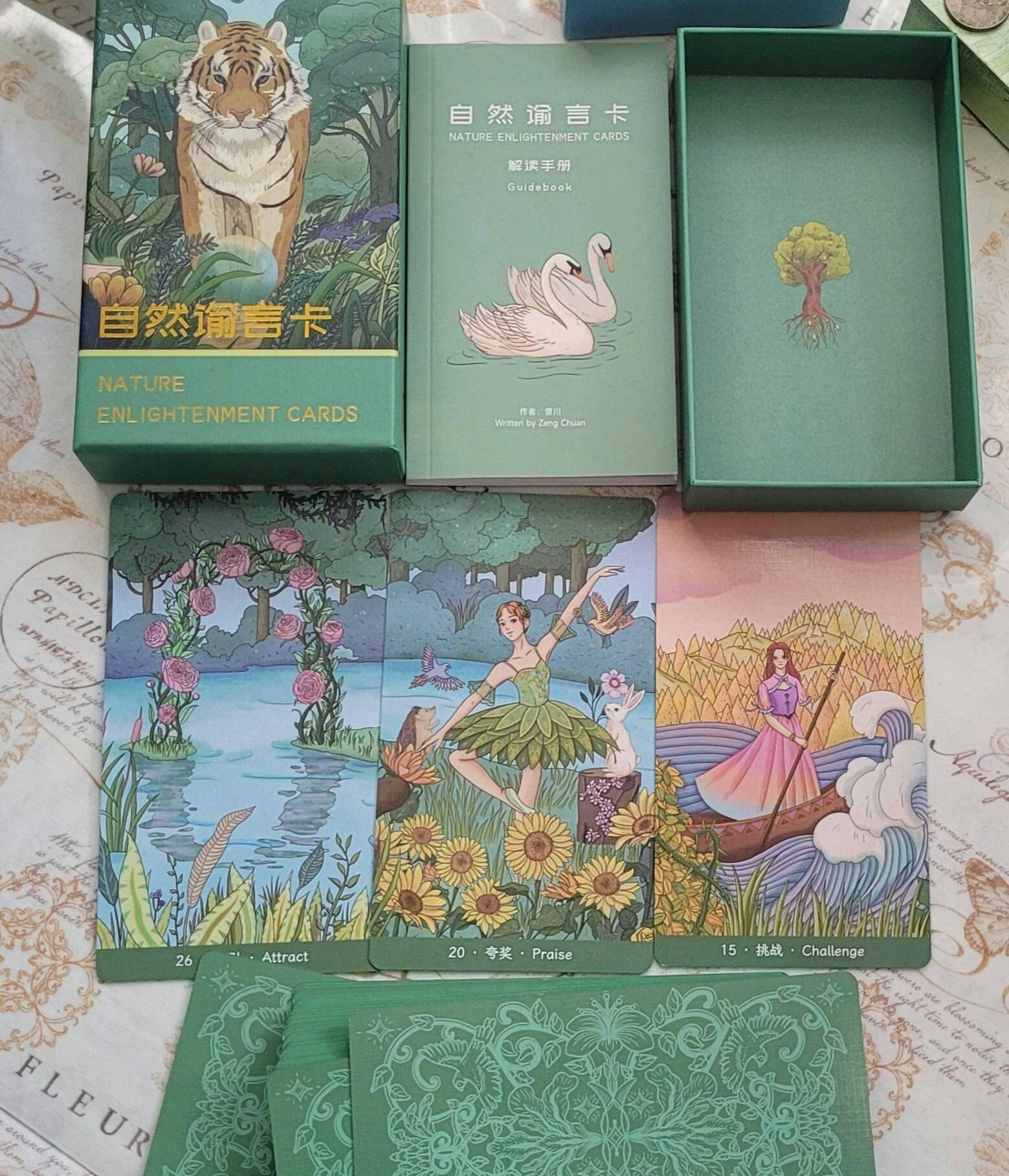 Taking inspirations from nature, this 36-card oracle deck encourages users to look for guidance in natural creations and serves as a medium through which the Mother Nature may enlighten you with her wisdom. It is a handy tool for self-exploration. Feel free to engage with the cards in creative ways.