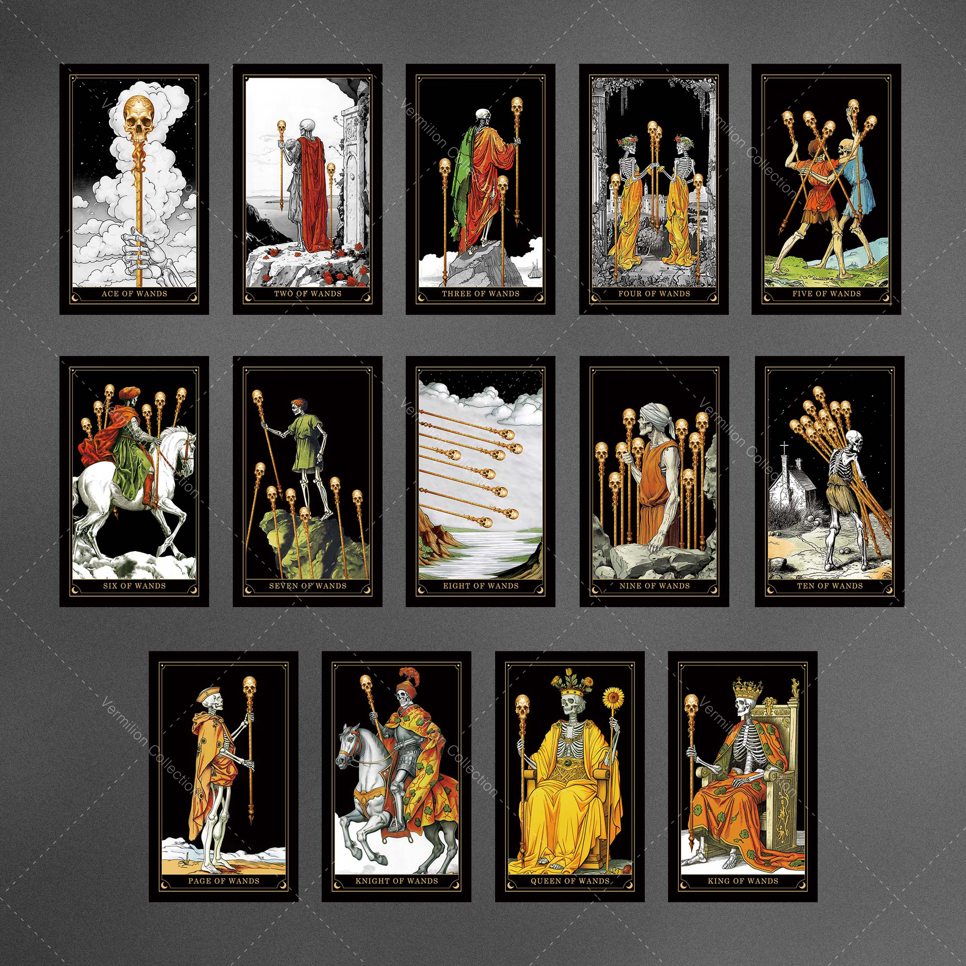 This deck reimagines the classic Rider-Waite tarot with a striking protagonist, telling a story of transformation. Skeletons, cloaked in royal robes or wielding ancient symbols, stand as timeless guides between worlds, reminding us that even in decay, there lies hope and strength. For those seeking something audacious and unapologetically gothic. Where the dead don't just speak – they reign.