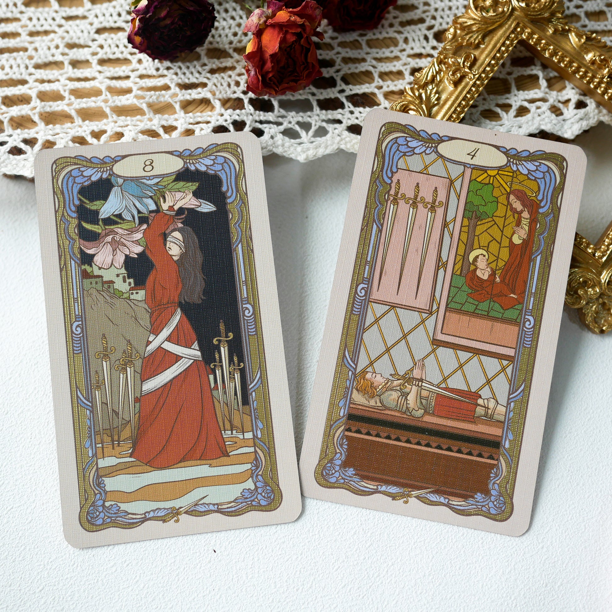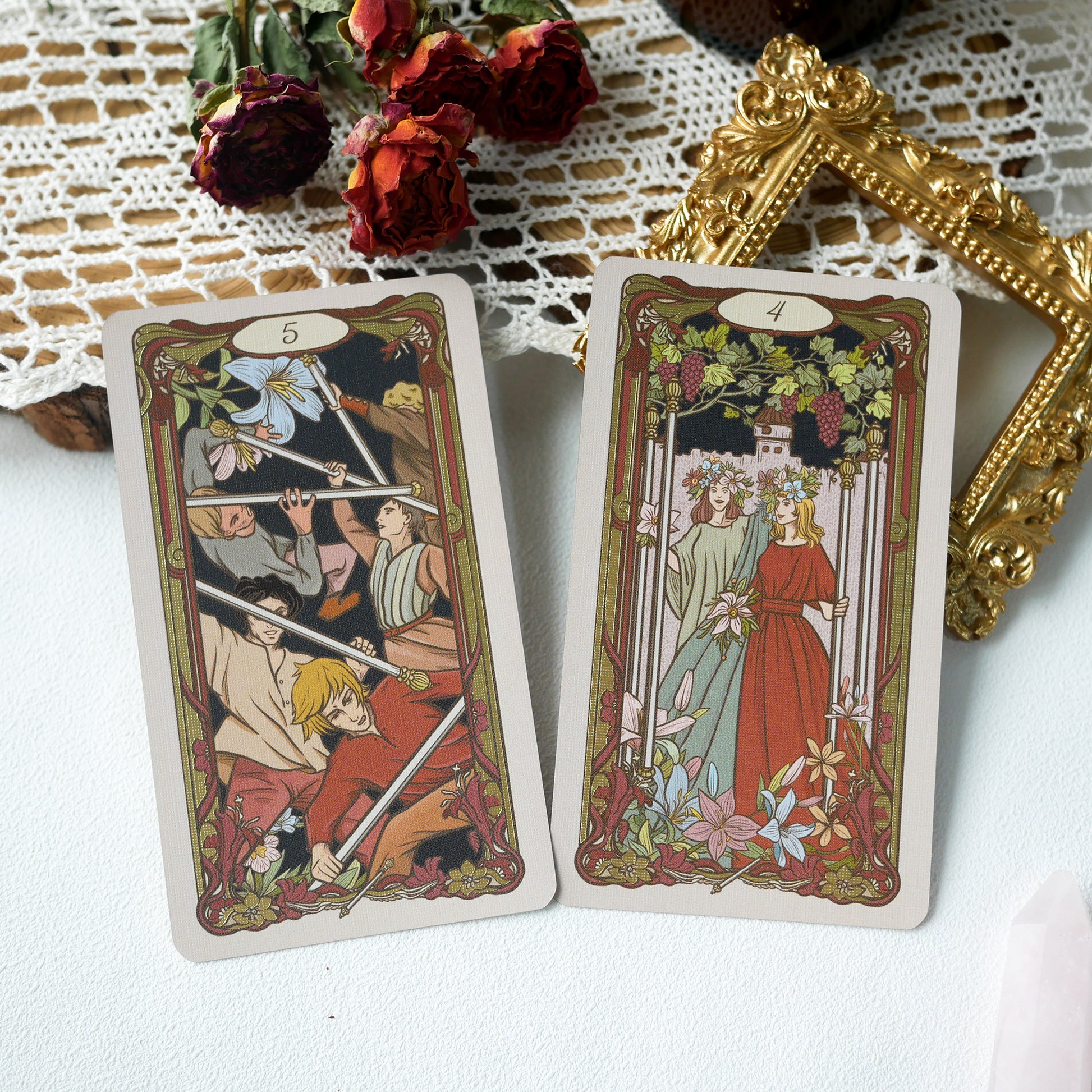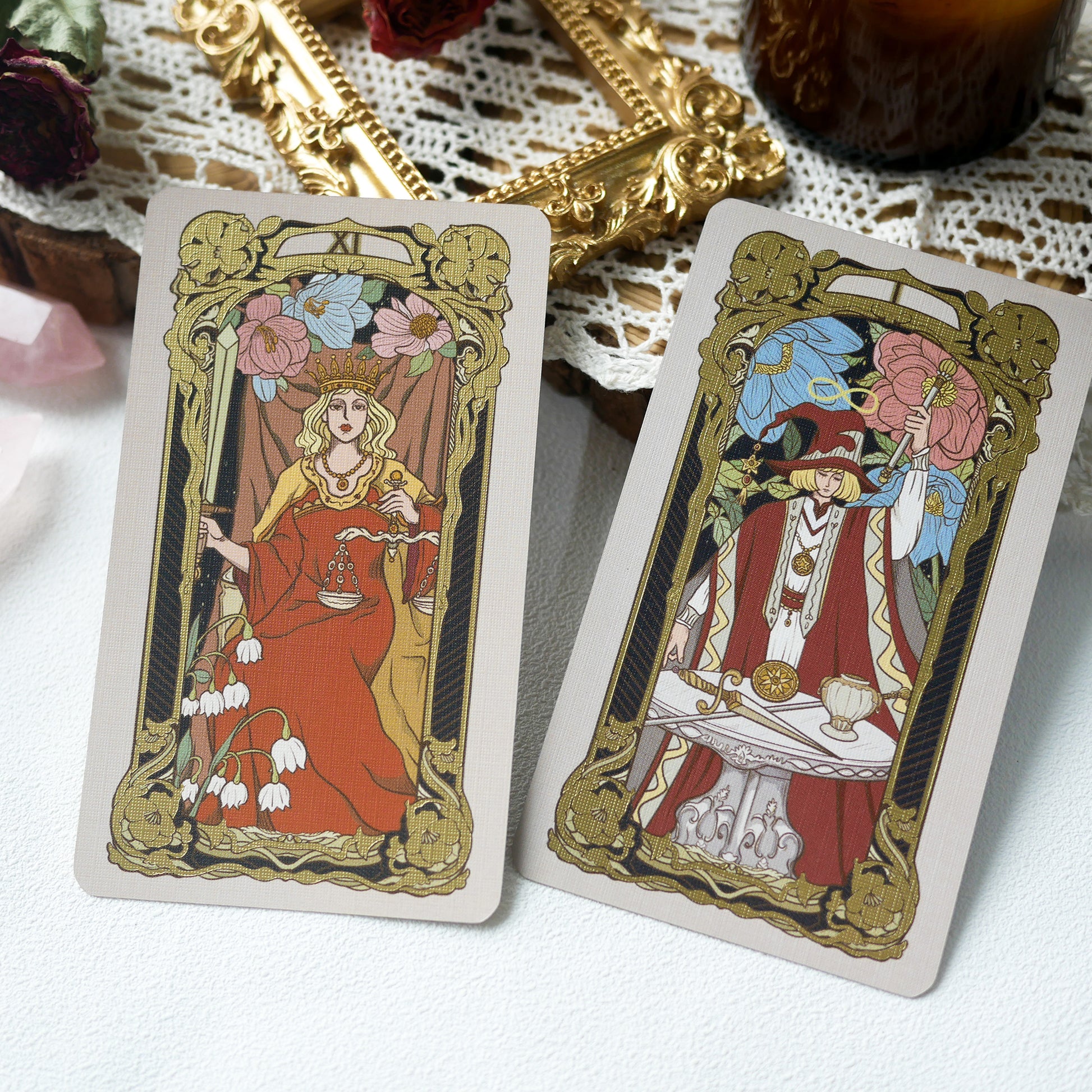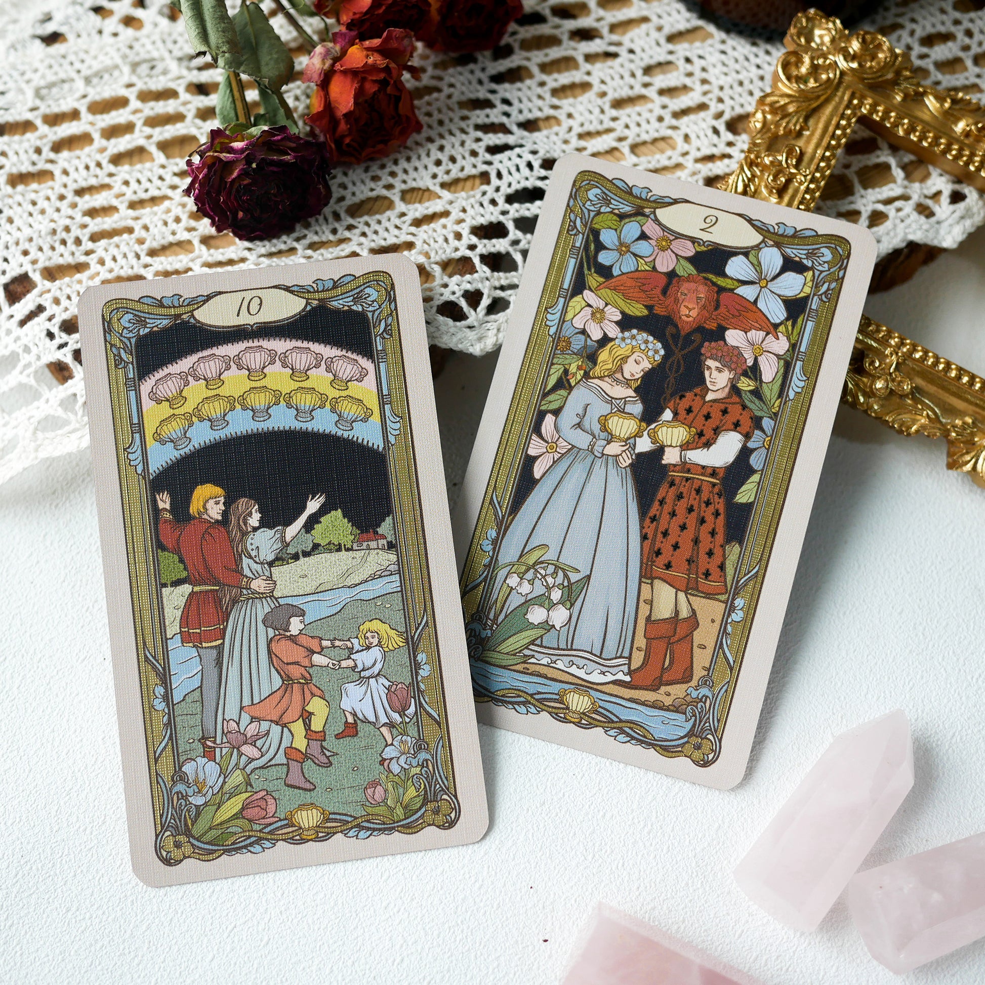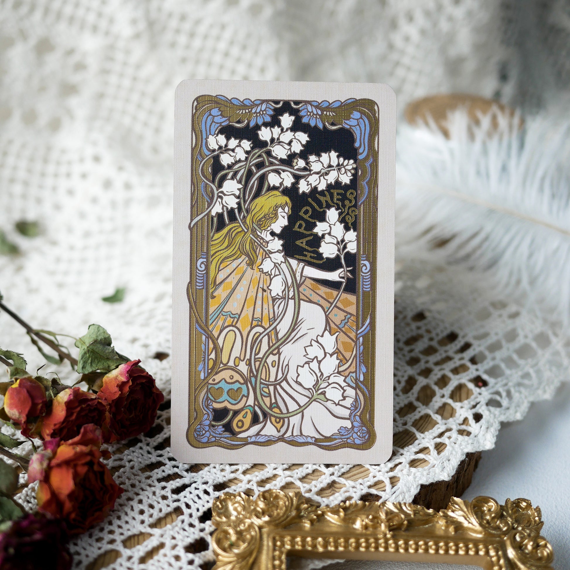 This deck pays homage to the short-lived Art Nouveau movement. Post the Industrial Revolution, a group of European artists returned to nature in search of primitive exuberance, advocating that art should explore the origins of natural creations. Full of life and excitement, most of the archetypical patterns and motifs found in Art Nouveau architecture and design are abstracted from nature and enriched with symbolism.