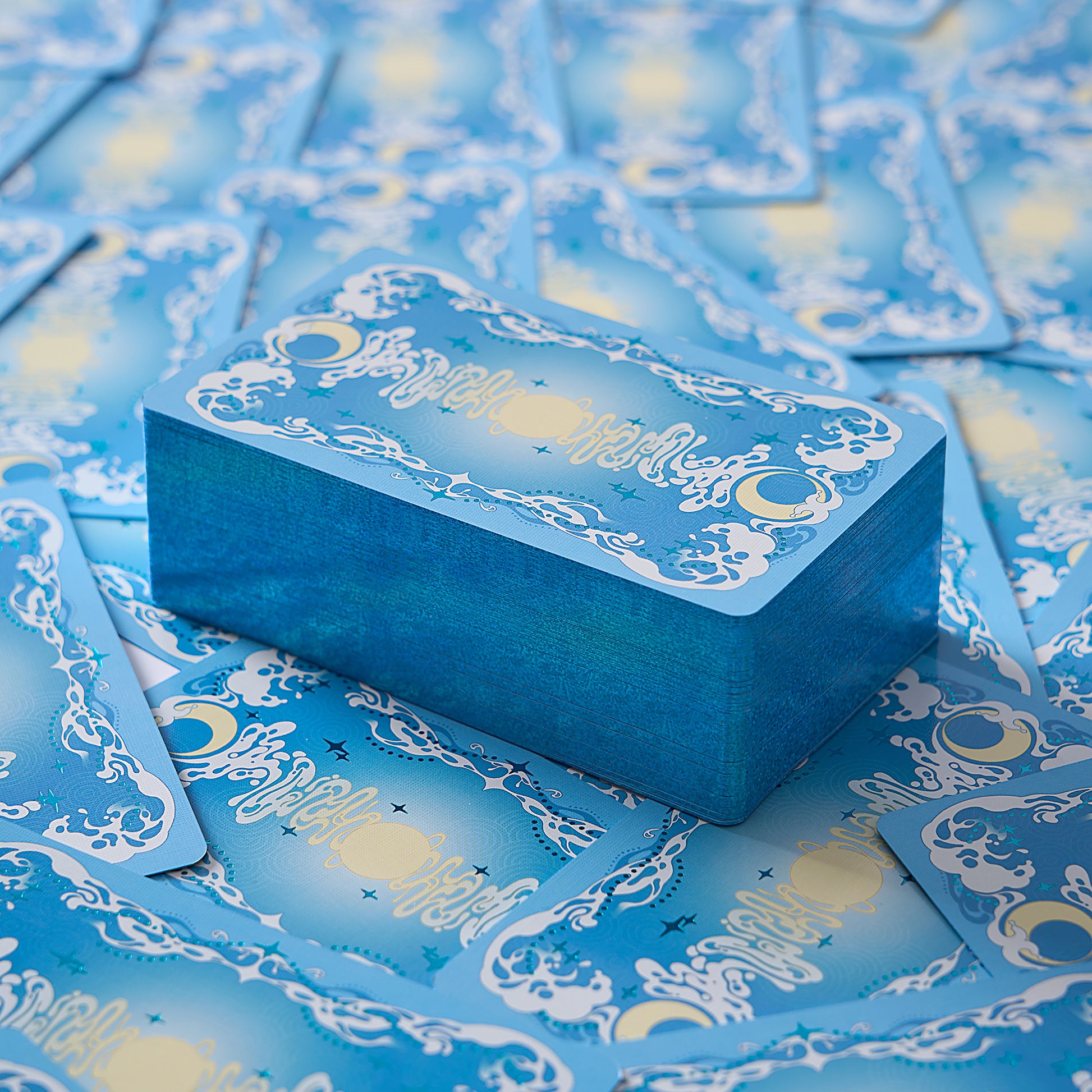 It’s about turning vulnerability into strength. In hues of blue, this deck tells the story of an albino dolphin through 78 cards of moonlit reflection. Ashamed of its specialness, the dolphin leaves its pod to wander the vast sea alone, only to encounter friends and mentors who guide it toward self-acceptance...