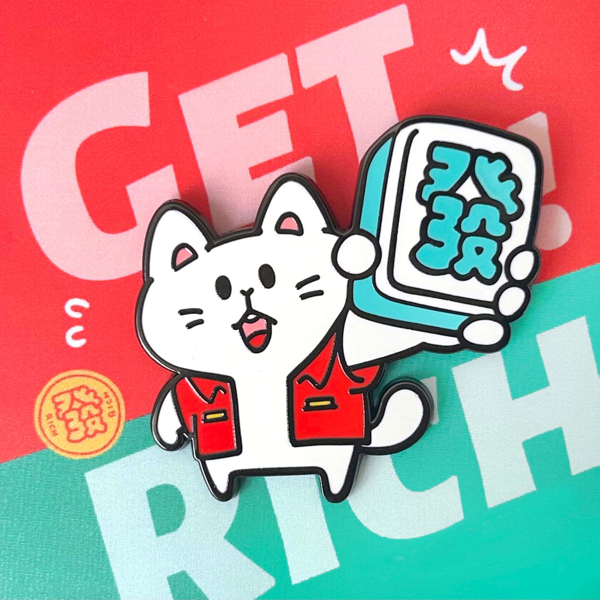 Get rich, stay cute, and start your own mini cat cartel of wealth! These pins are flexing stacks, flipping tiles, and steeping on that money like it's memory foam. Each pin is a playful charm of good fortune, like a lucky coin with extra swagger. Inspired by hip-hop hustle and maneki-neko magic, they're here to boost your vibe – maybe your bank account, too.