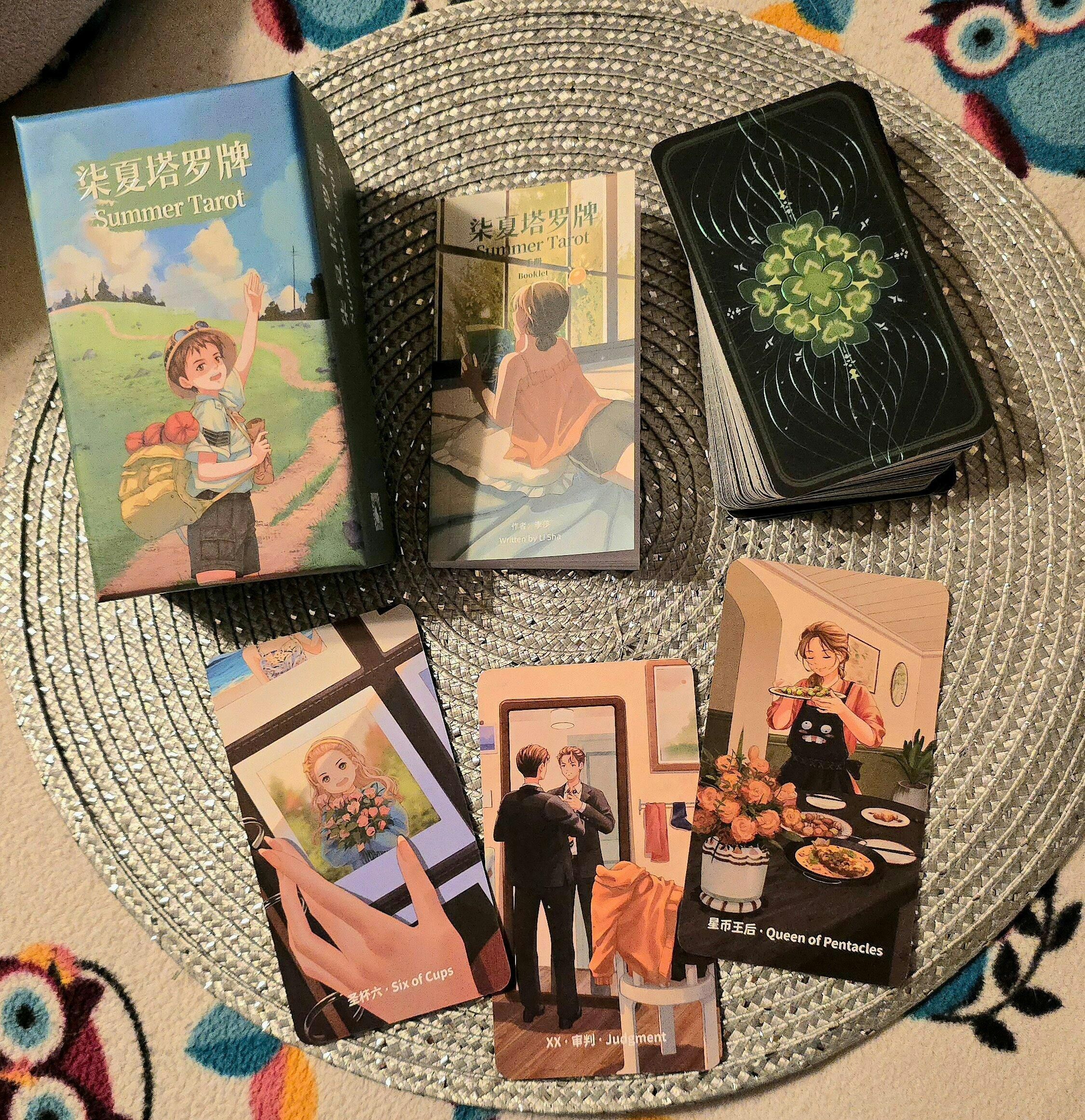 Summer Tarot feels like holding a Slice of Life anime in my hands. I can almost hear the soundtrack in my head as I flip through the cards. And not just the music, the natural sounds as well: cicadas, waves, and seagull cries. While this deck doesn't rely on traditional tarot symbolism, the meanings are in fact there. There is a small guidebook that comes in both Chinese and English which describes the meaning of the card with keywords, as well as a short story about what's going on in the imagery. This makes it very accessible to beginner readers. Summer Tarot is a very nice addition to my personal collection.