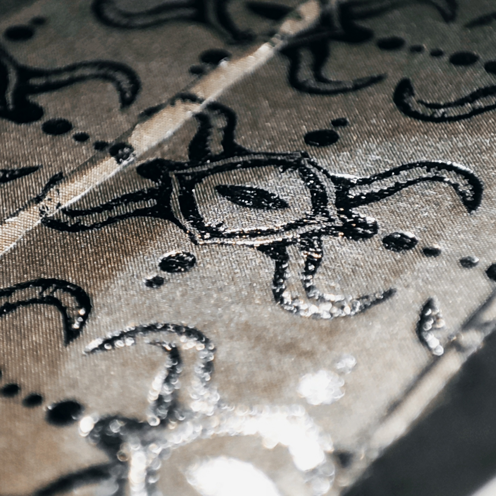 Each deck has either regular edges or gilded edges. There is a 33.33% chance you get a gilded version (222 gilded decks & 444 standard decks). The outer black plastic sleeves, fully sealed without indicating what type of deck is inside, are virtually mystery boxes. The inner paper tuck box has either a gold tear tape (gilded) or clear tear tape (non-gilded) so you can tell the difference without opening the seal for the tuck box.