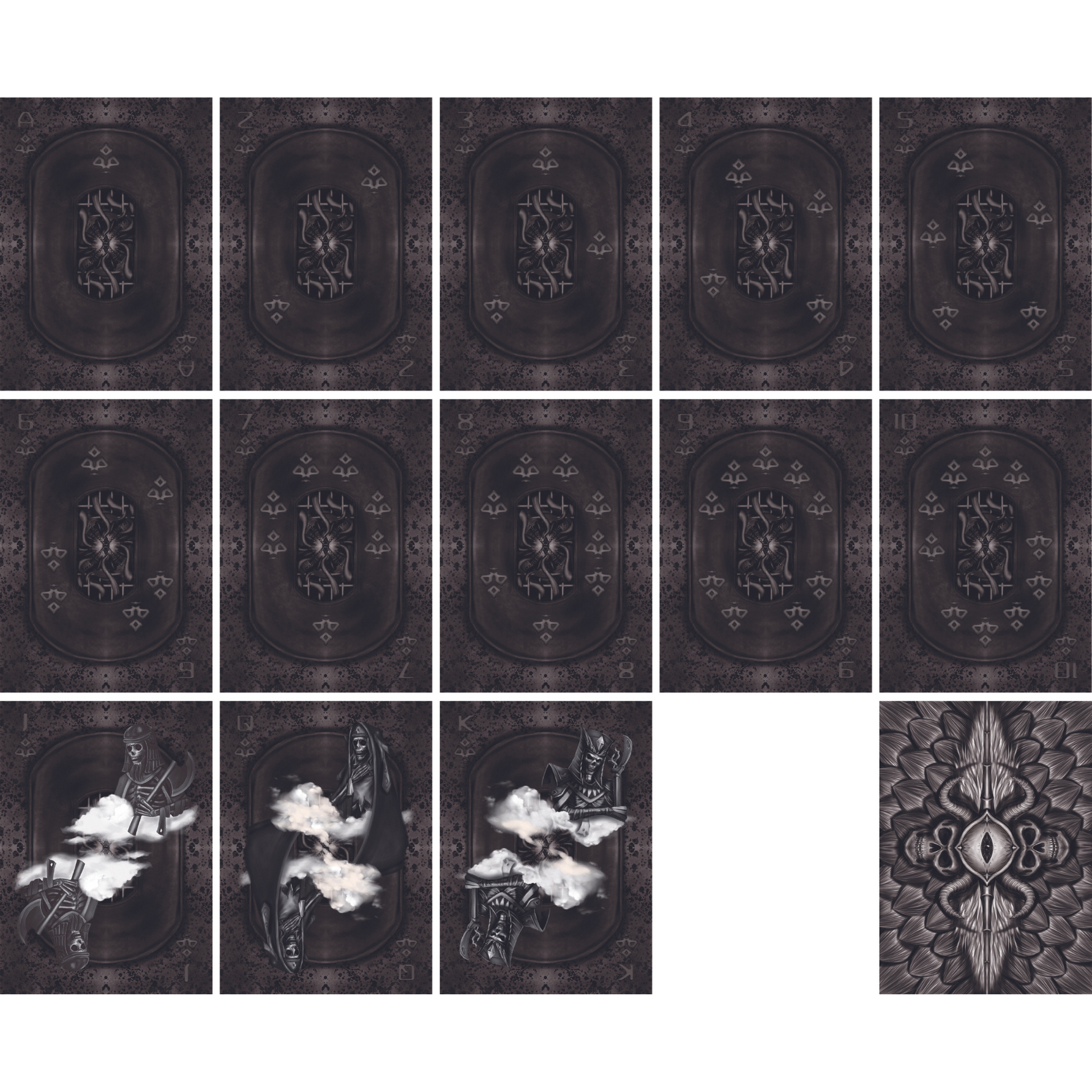 In this deck, you'll find the original illustrations of 12 creatures from 4 bodies of myths and two characters inspired by the Cthulhu Mythos. The greedy serpents, malicious sea monsters, cold-blooded undead, ruthless devils... Feel your heart sink in the dark forest... will you survive?