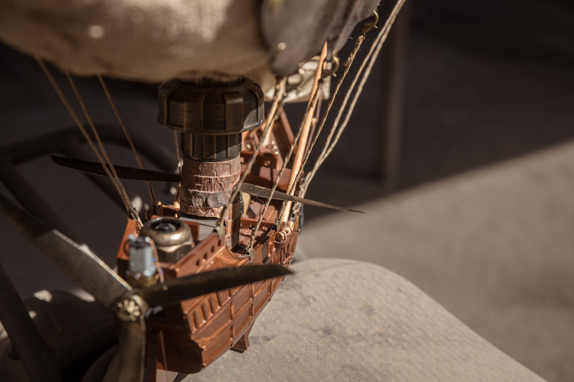 From its sturdy wooden hull and powered propellers to its rigging and rivets, the details are painstakingly lifelike. You can almost hear the creak of ropes and churn of gears.