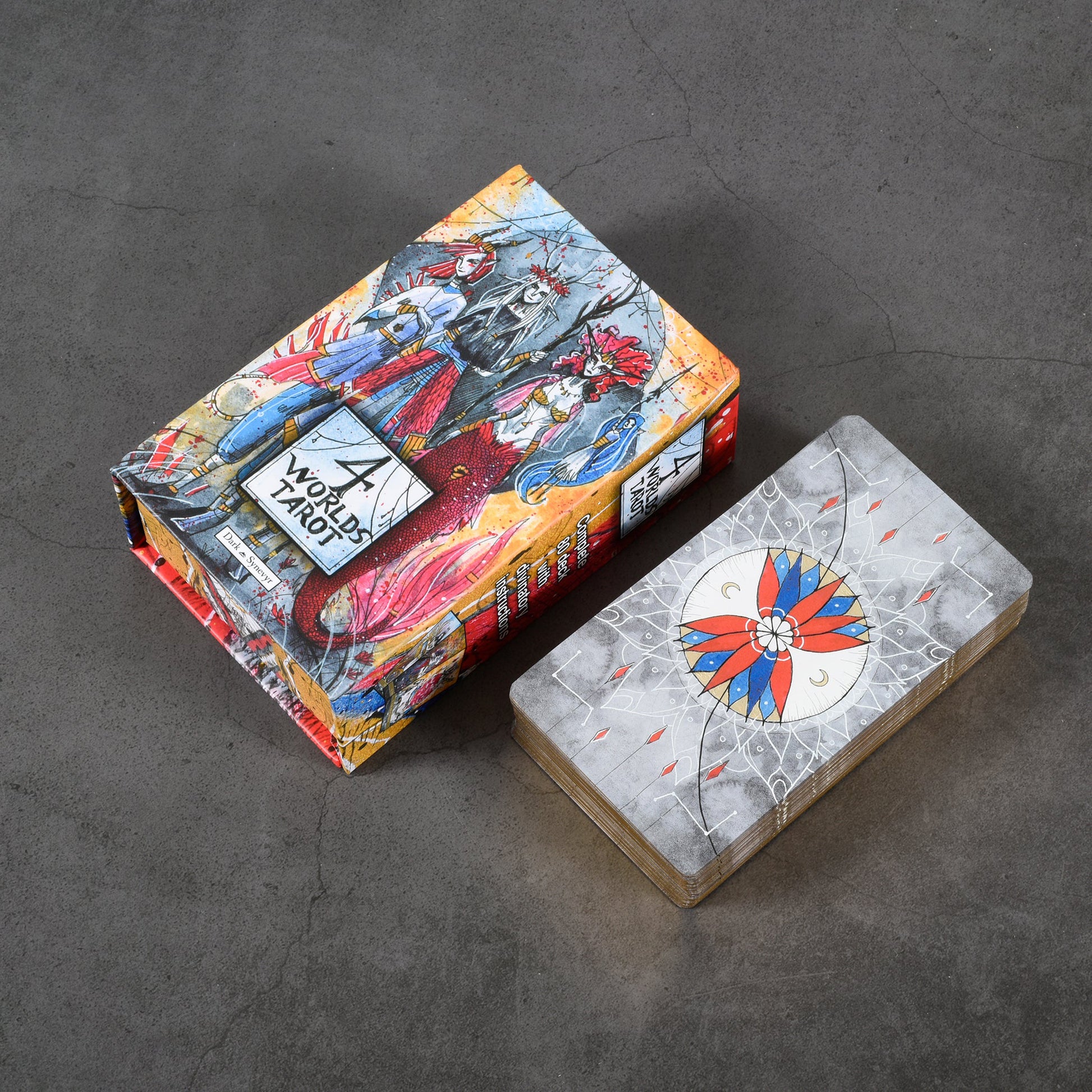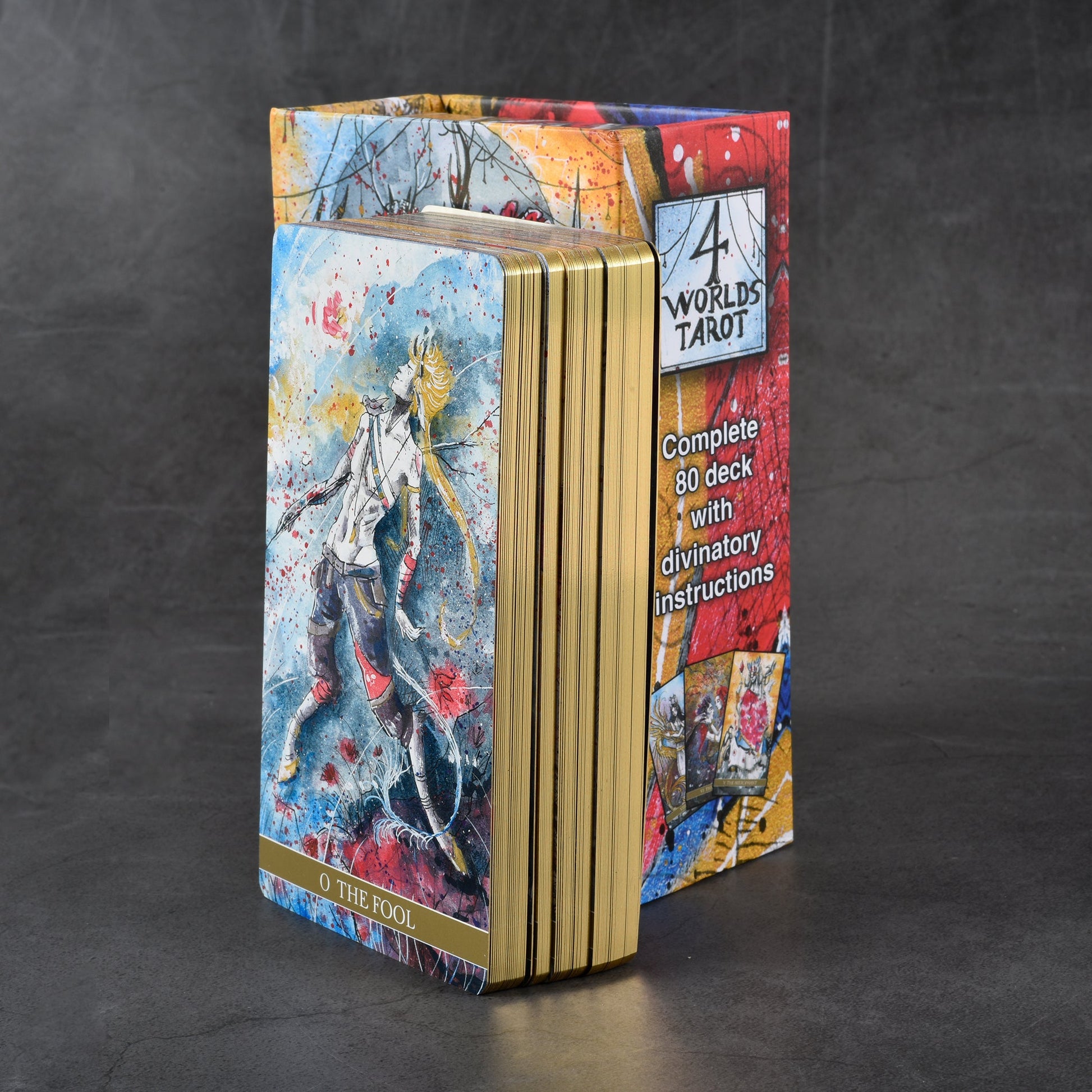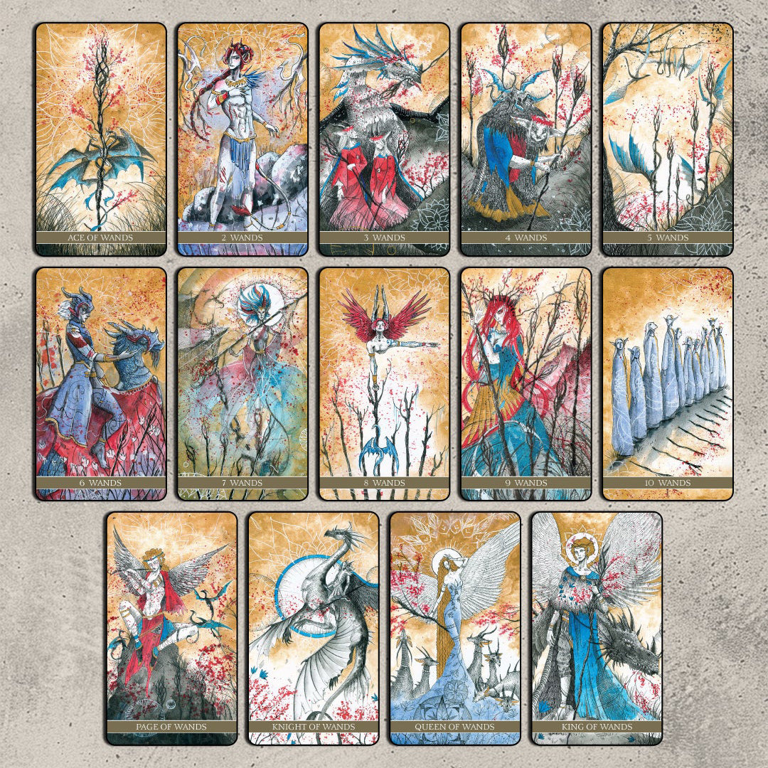 Imbued with primal energy, this wildly imaginative take on the Rider-Waite tells us to face life and death with a light heart, through its uninhibited portrayal of the Four Realms. It channels esoteric philosophy in a riot of color, while the Western comic brushwork lends a playful touch – perhaps even a knowing smile. Amidst chaos, this deck will guide your soul to its place of rest and awaken the power that has always dwelled within.