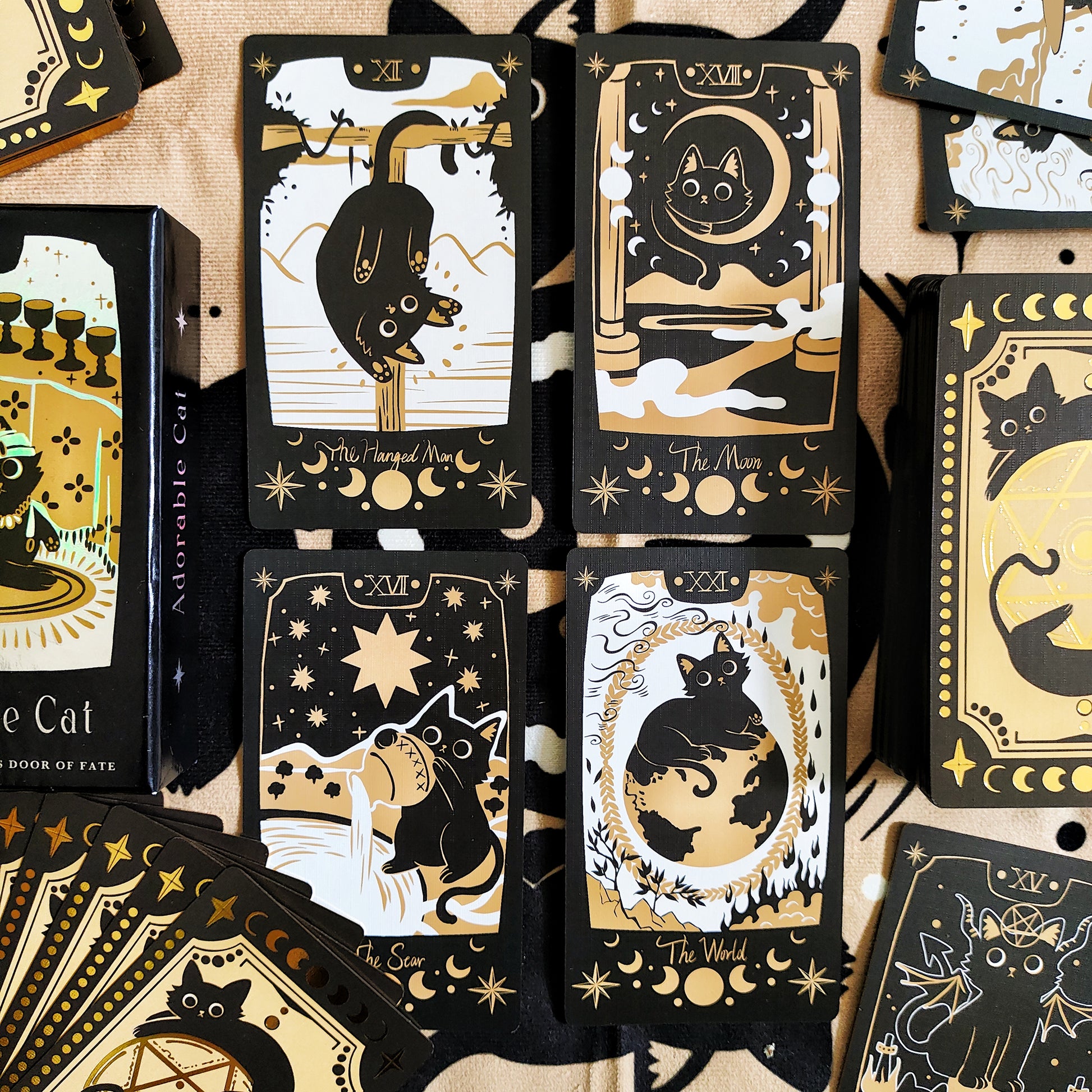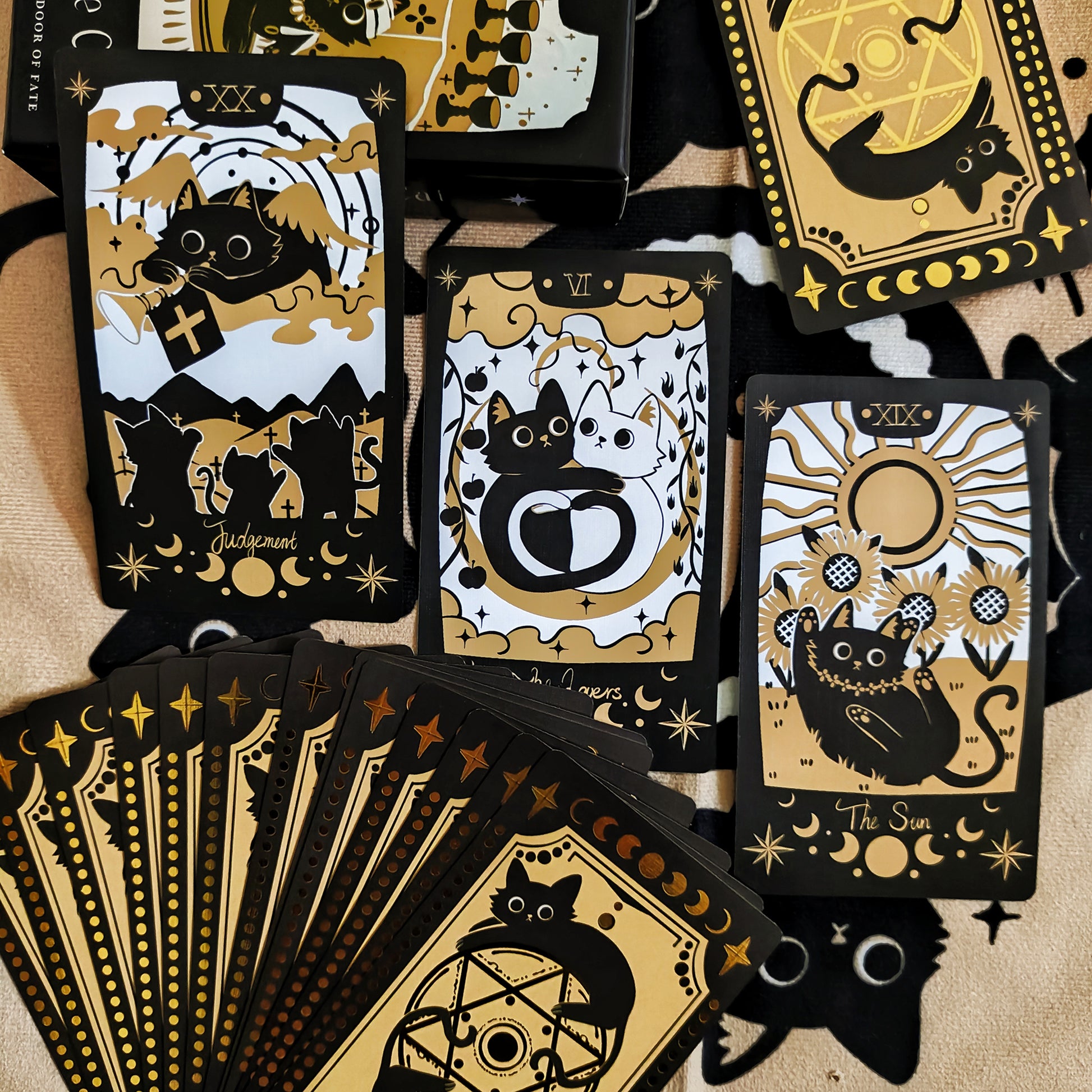 The Deluxe Edition cards have metallic black-gilded edges and gold foil accents on the back. The box features holographic lamination and spot UV coating for added shine and texture.