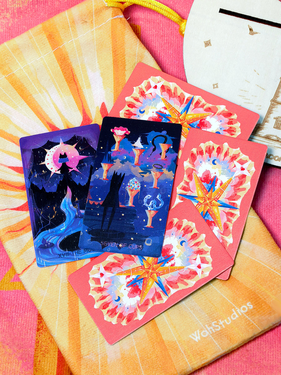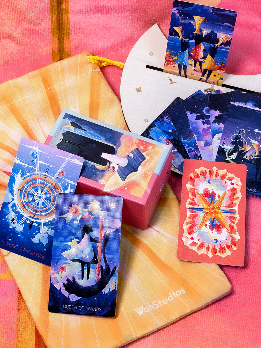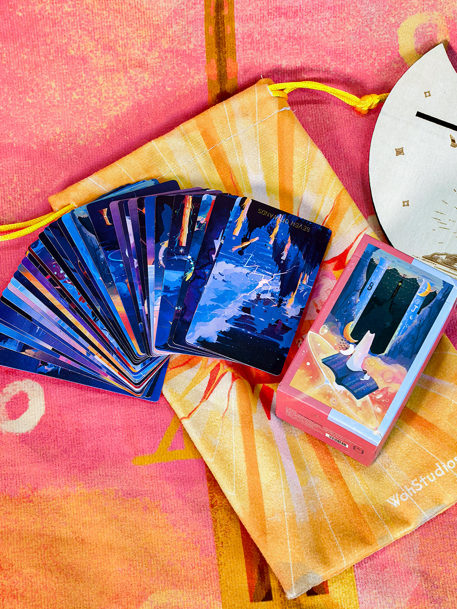 Inspired by the enduring symbolism of the lighthouse, this deck is devoted to those who walk uncharted paths, guided by their own truths. Each illustration is a soft blaze of emotion and metaphor. Blending abstract imagery with colorful, express detail, it offers a dreamlike visual experience that invites deep inner seeing.