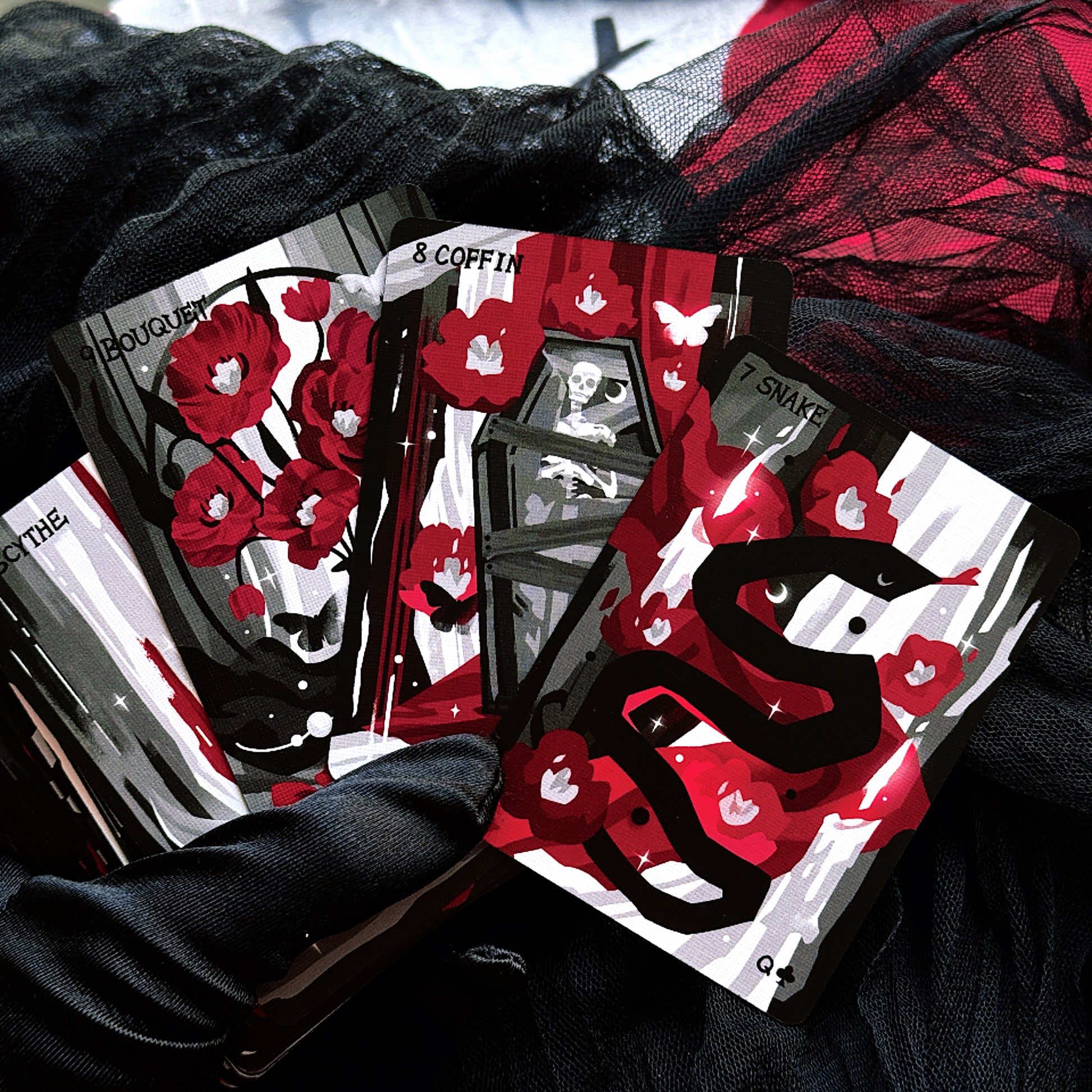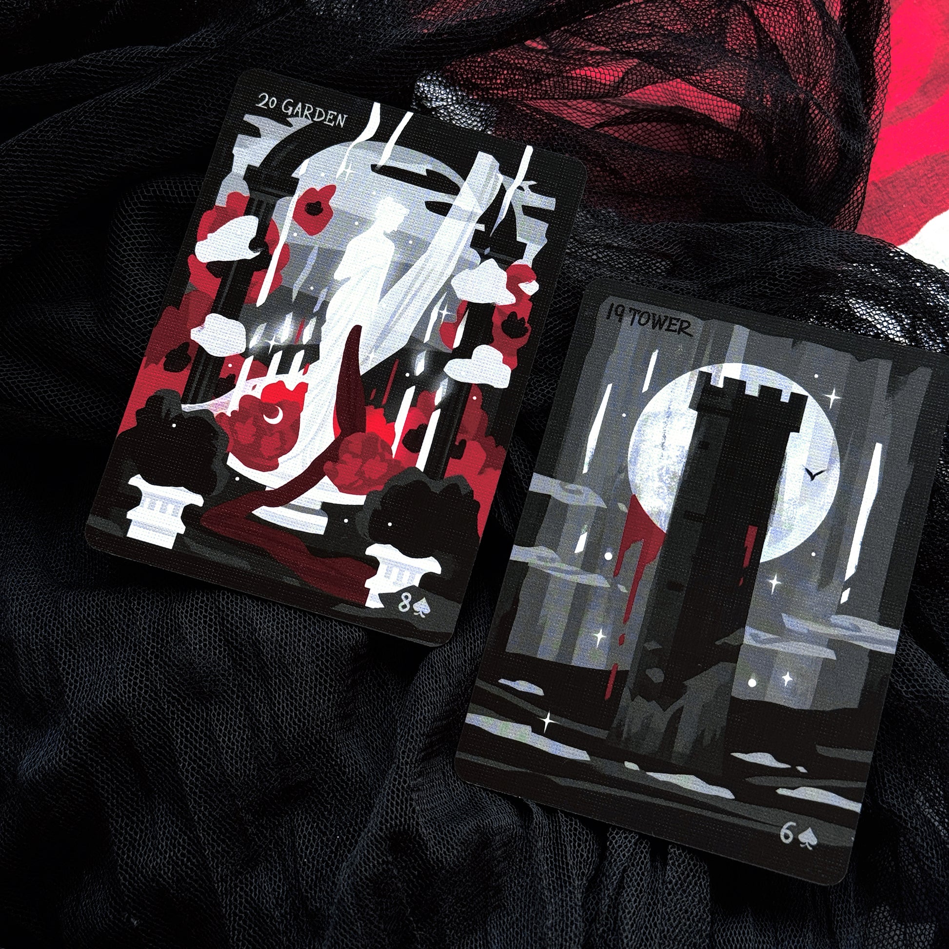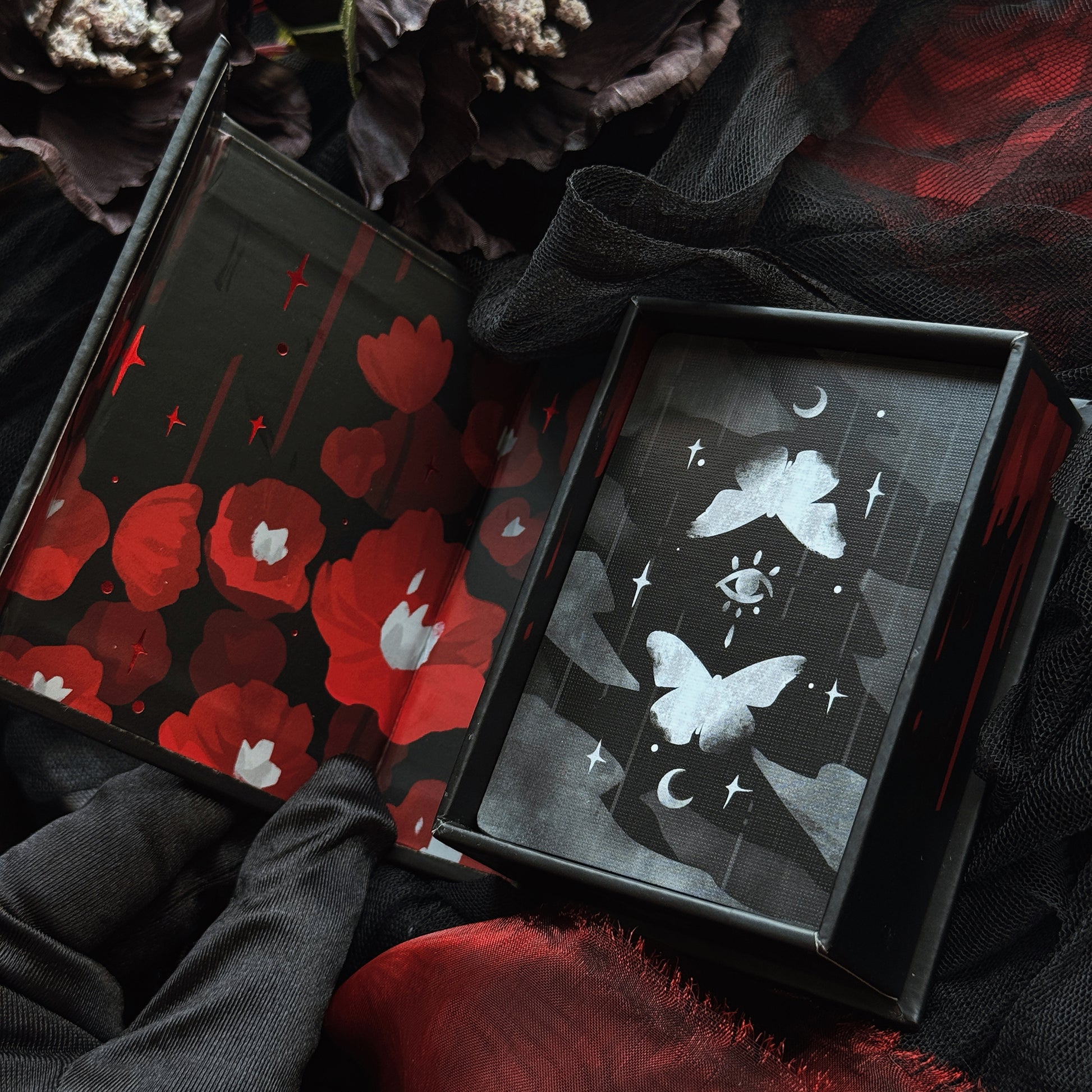 For witches and wizards who believe in resurgence, this beginner-friendly Lenormand deck includes 36 basic cards and 7 optional cards compatible with the Rana George system. It's inspired by medieval Gothic aesthetics and the haunting beauty of blood amber and red poppies – symbols of mystery and renewal.