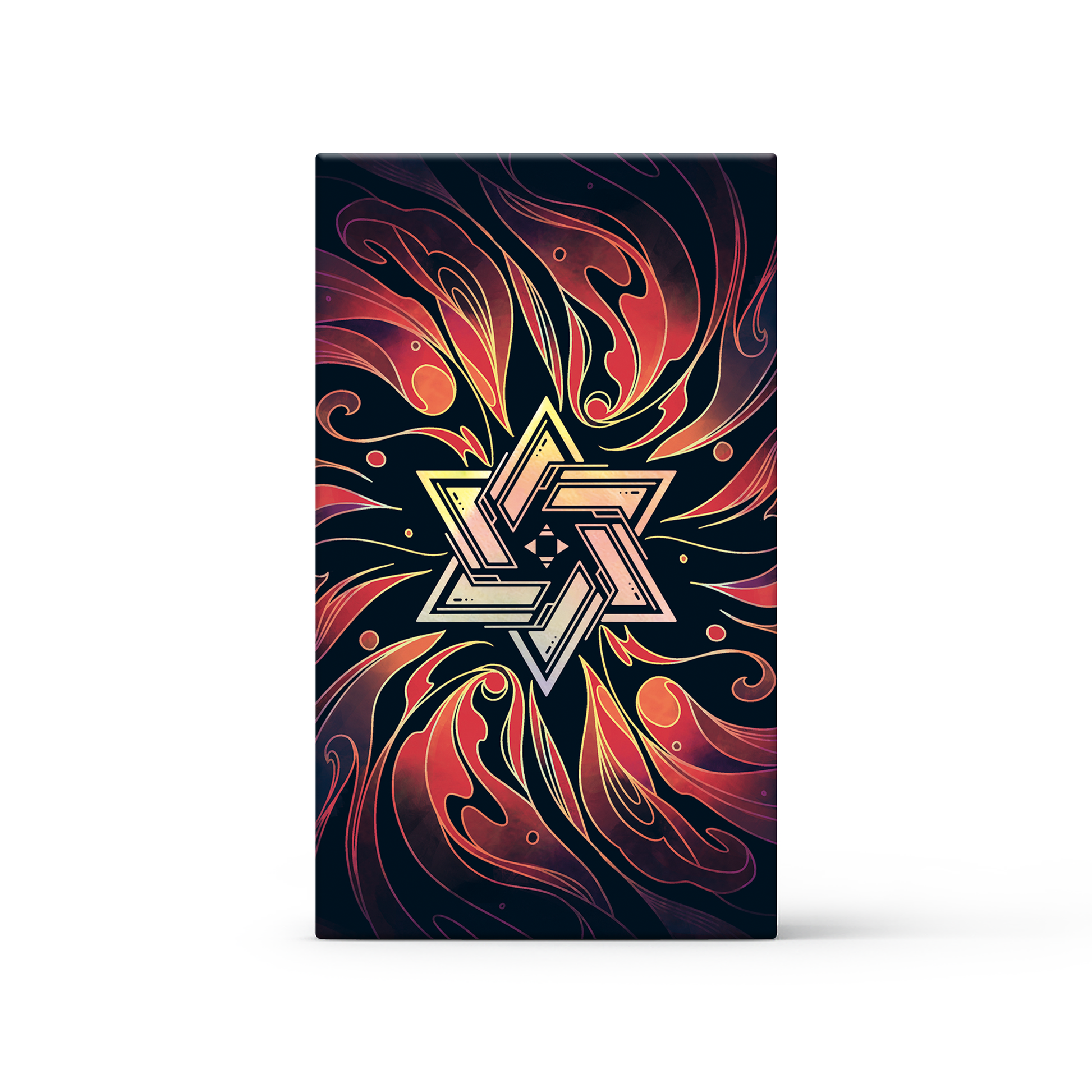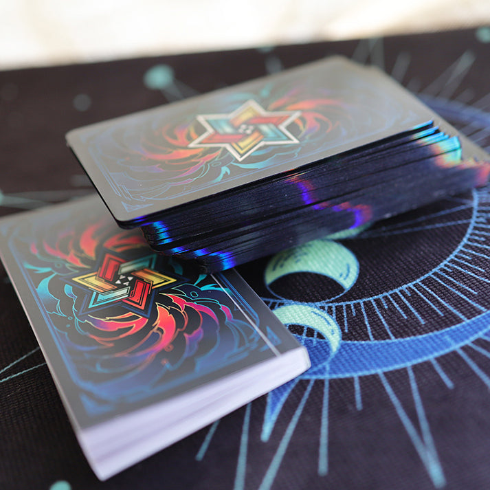 This 78-card Rider-Waite deck explores the four elements, which symbolize the universal forces that shape human experience. They are reflected in the Major Arcana through symbolic attributes. Figures are drawn without distinct racial or ethnic attribute; their skin tones manifest their elemental energies, while their costumes symbolize their identities. In the Minor Arcana, each suit is represented by elemental fairies: Salamanders for Wands (Fire), Undines for Cups (Water), Sylphs for Swords (Air), and Gnomes for Pentacles (Earth). The cards within each suit form a cohesive visual narrative, flowing seamlessly when viewed in sequence.