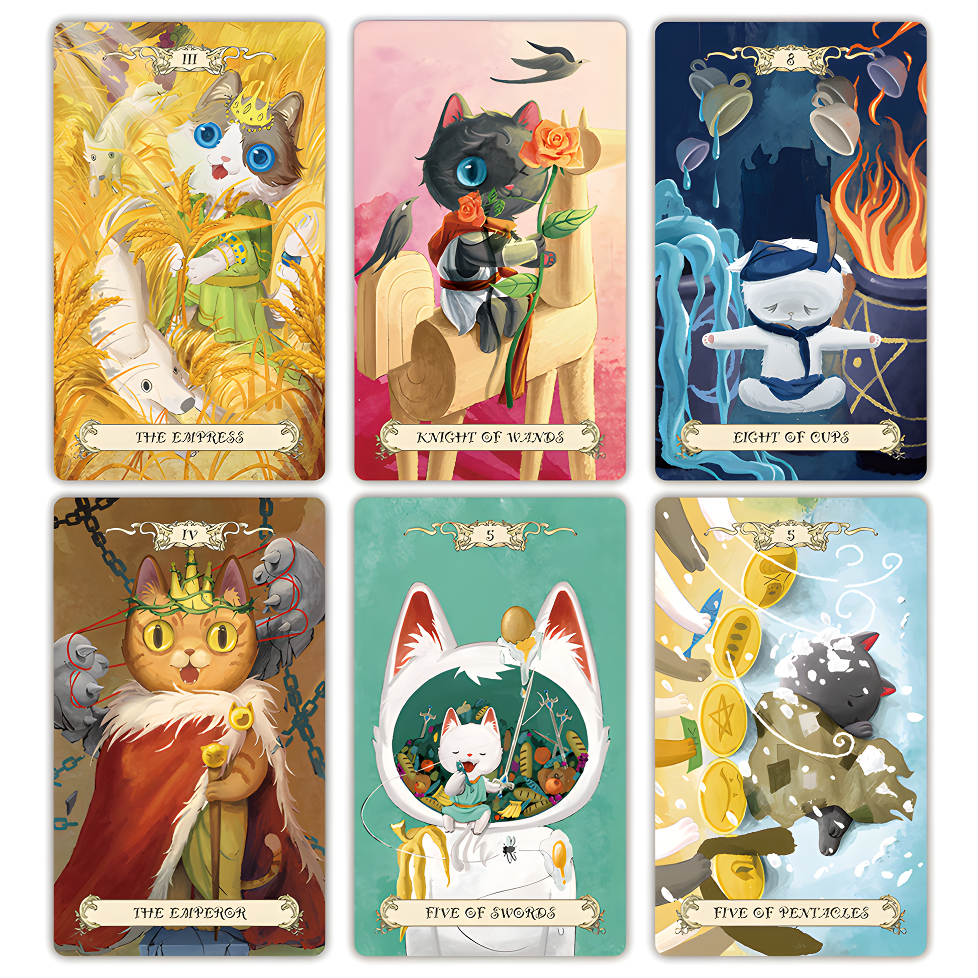 Not your average royal court. Here, the Queens nap in sunbeams, the Knights chase butterflies, and the High Priestess is probably judging you (adorably) from a windowsill. Seventy-eight painted scenes feel half fairytale, half fever dream. One moment you're in a quiet garden of secrets, the next in a throne room with paw prints on the velvet. It’s weird. It’s regal. It’s full of cats. And somehow, it knows exactly what you’re thinking.